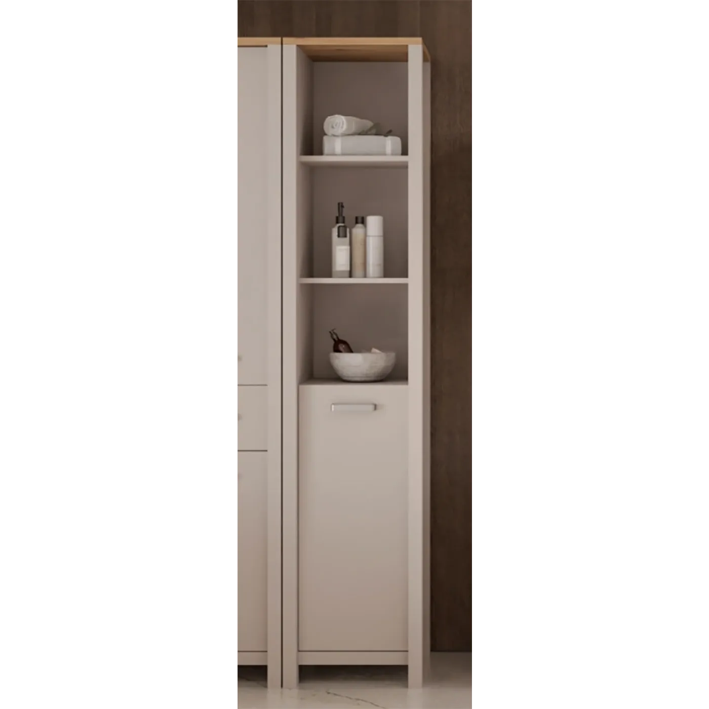 Armadietto da bagno a 1 anta, L.42 H.197 P.40, Rovere Artisan e Cashmere