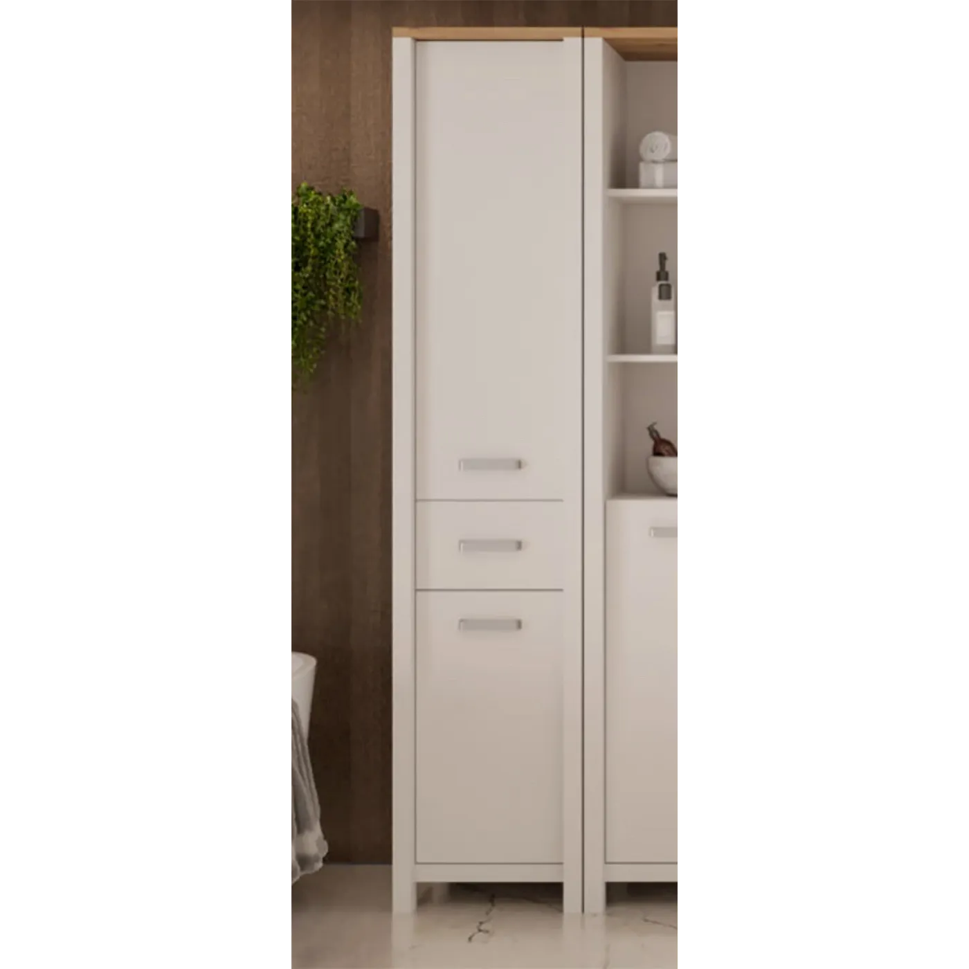 Armadietto da bagno, L.42 H.197 P.40, Rovere Artisan e Bianco