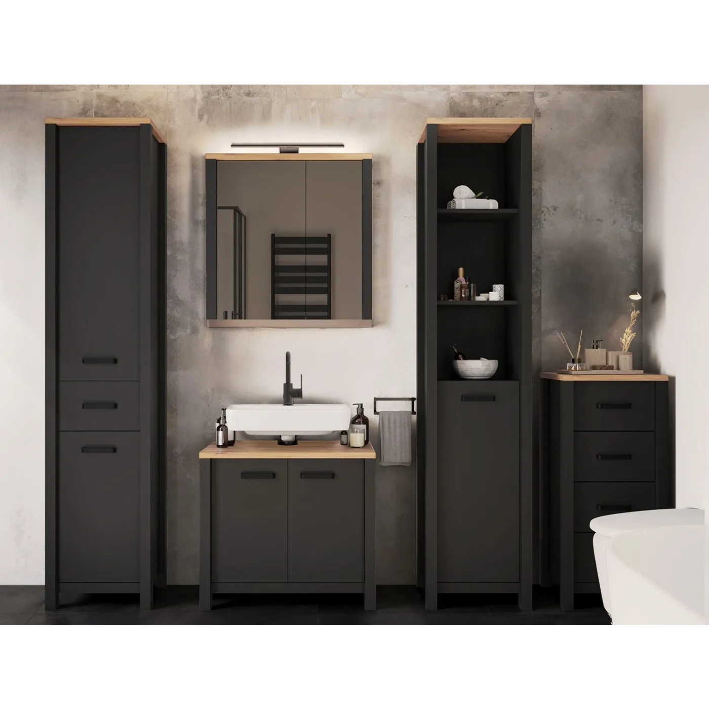 Armadietto da bagno a 1 anta, L.42 H.197 P.40, Rovere Artisan e Antracite