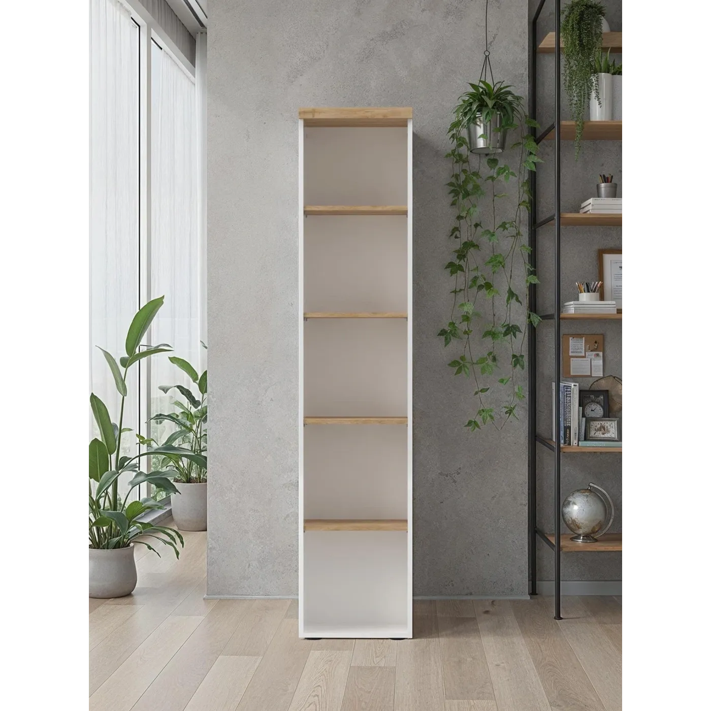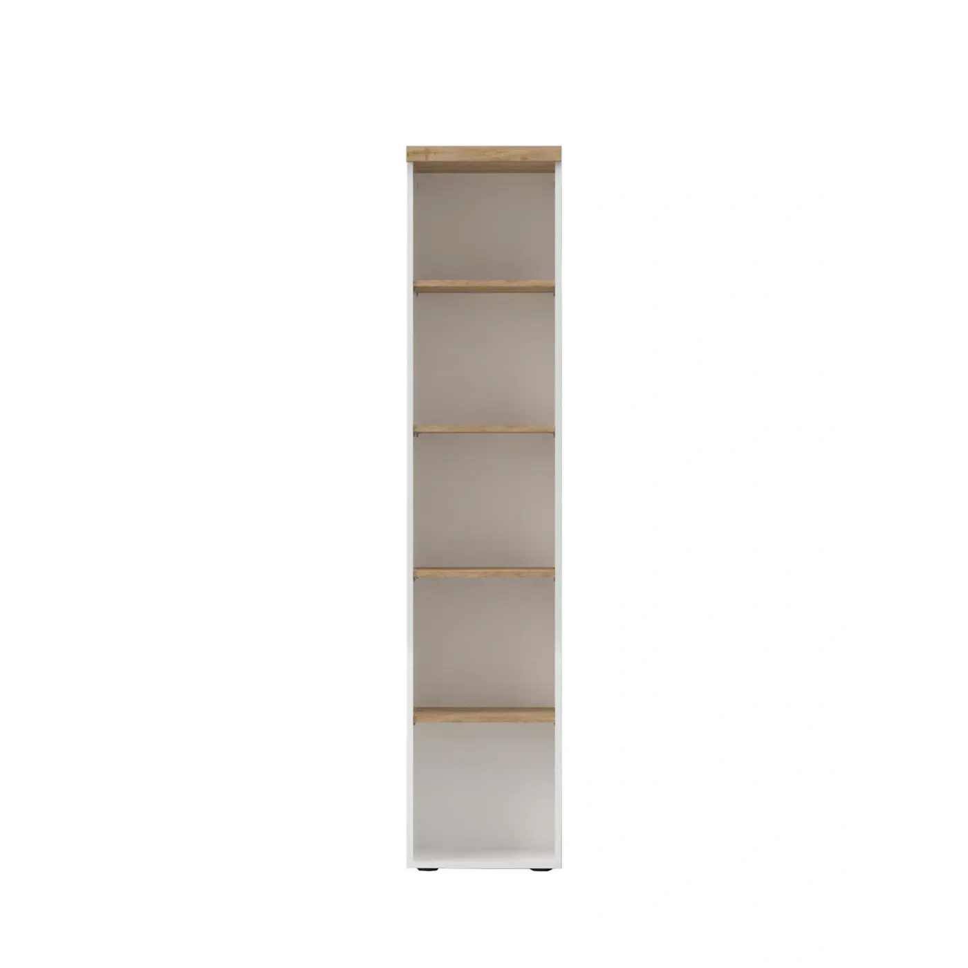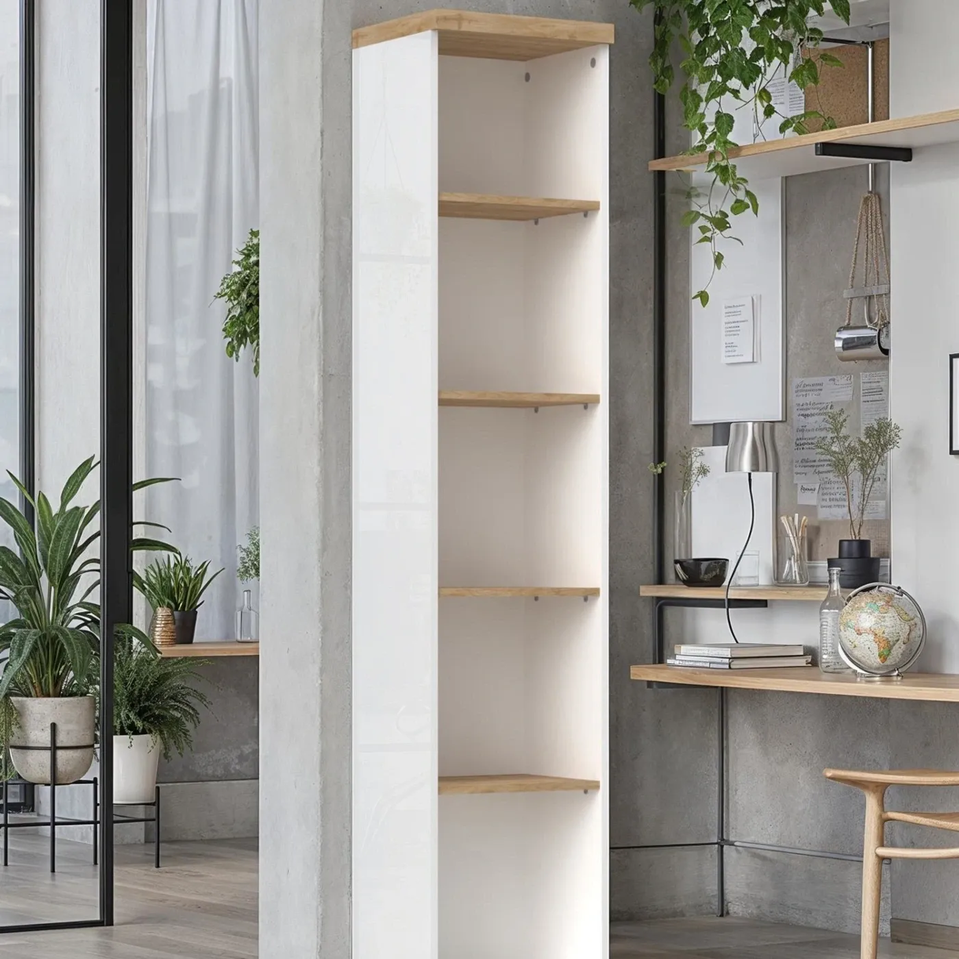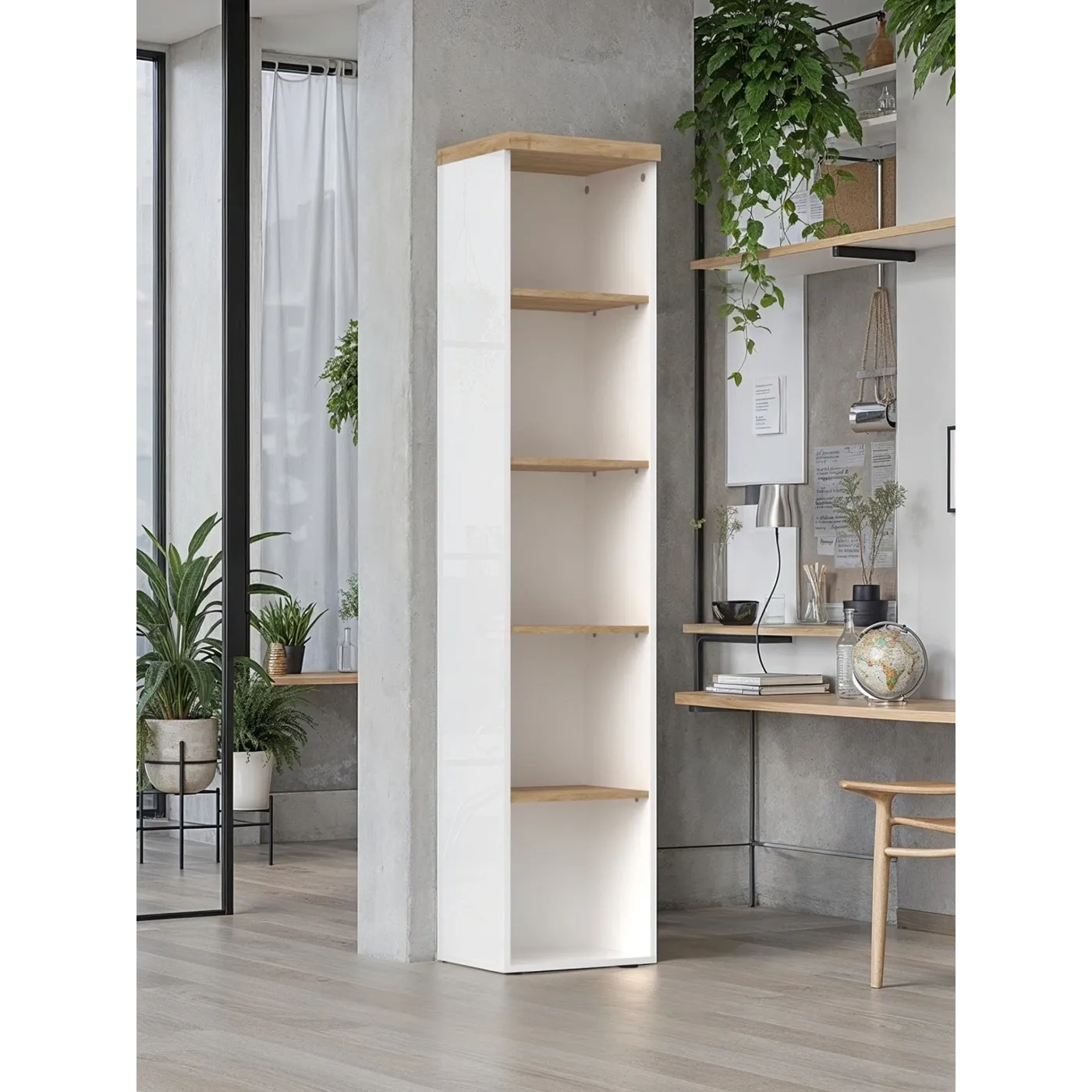 Libreria alta da ufficio a 4 ripiani, L.41 H.193 P.34, Bianco lucido e Cadiz
