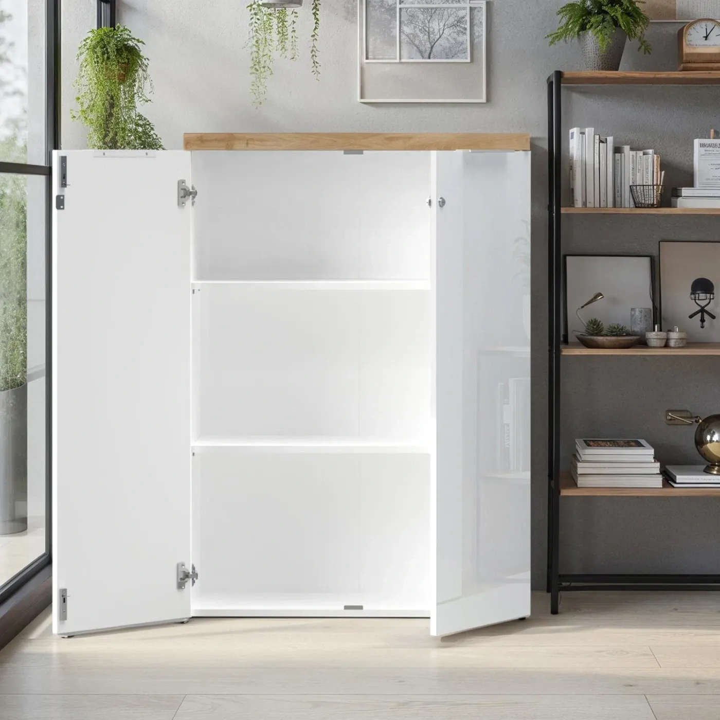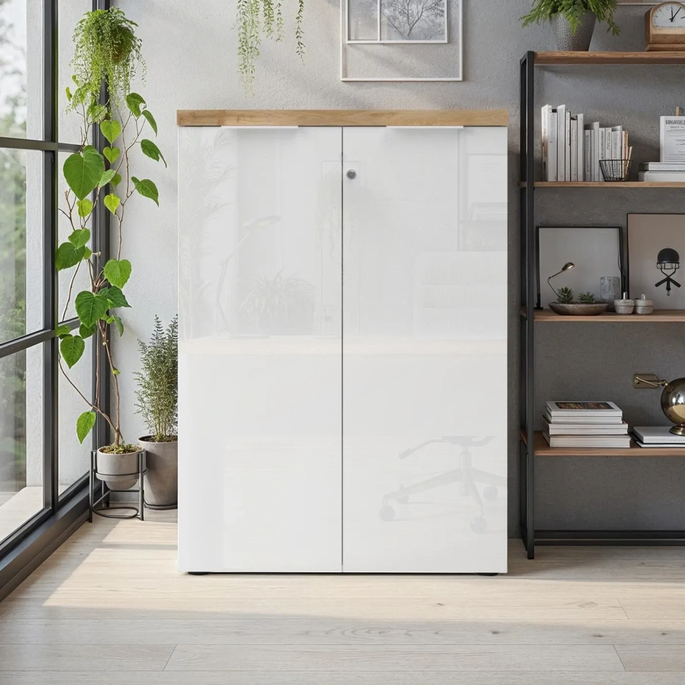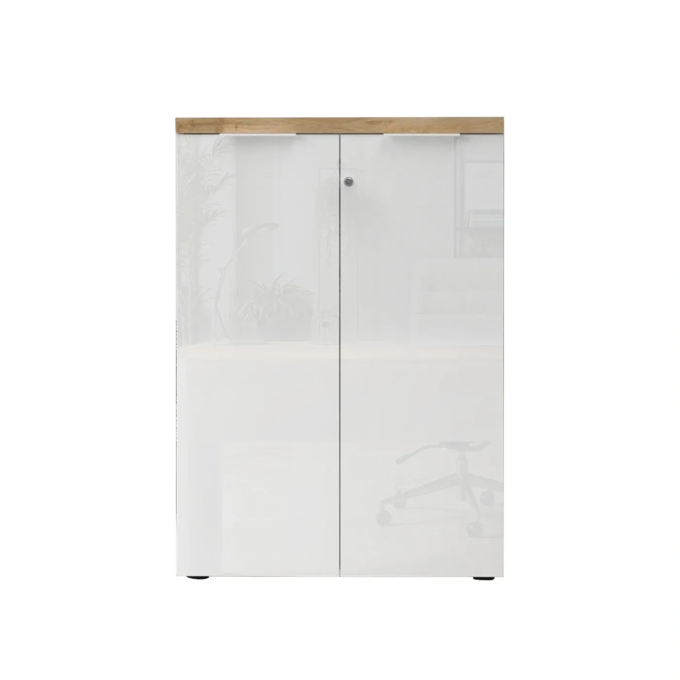 Armadietto da ufficio a 2 ante, L.81 H.116 P.34, Bianco lucido e Cadiz