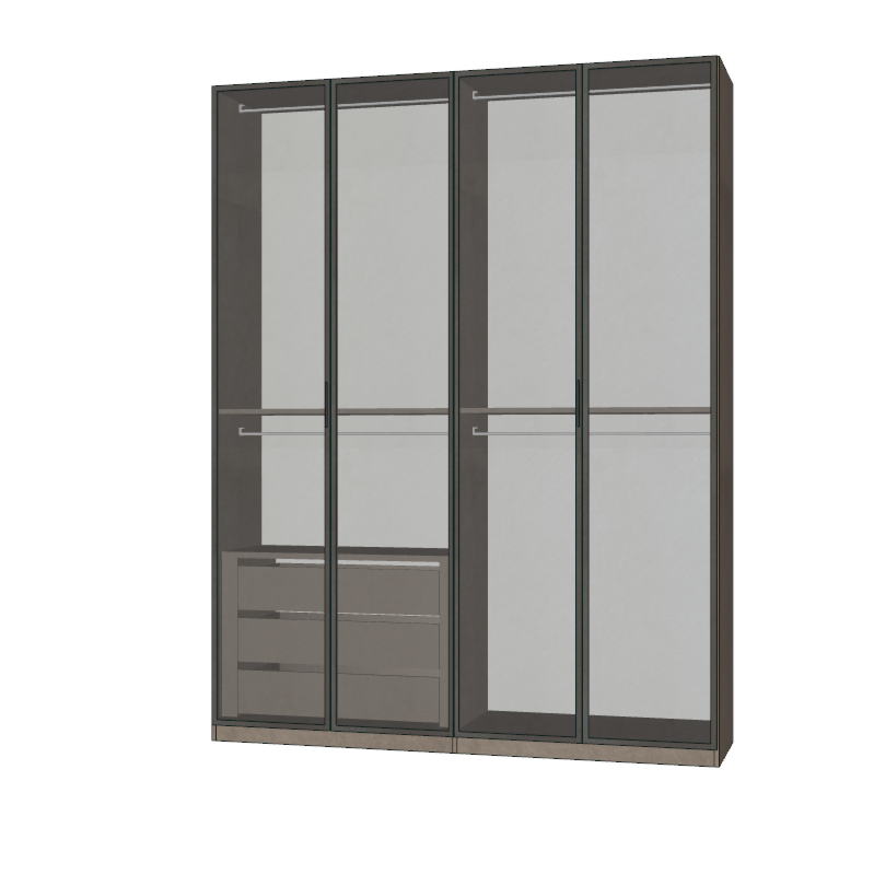 Armadio 4 ante battenti con vetro fumè, Bronzo