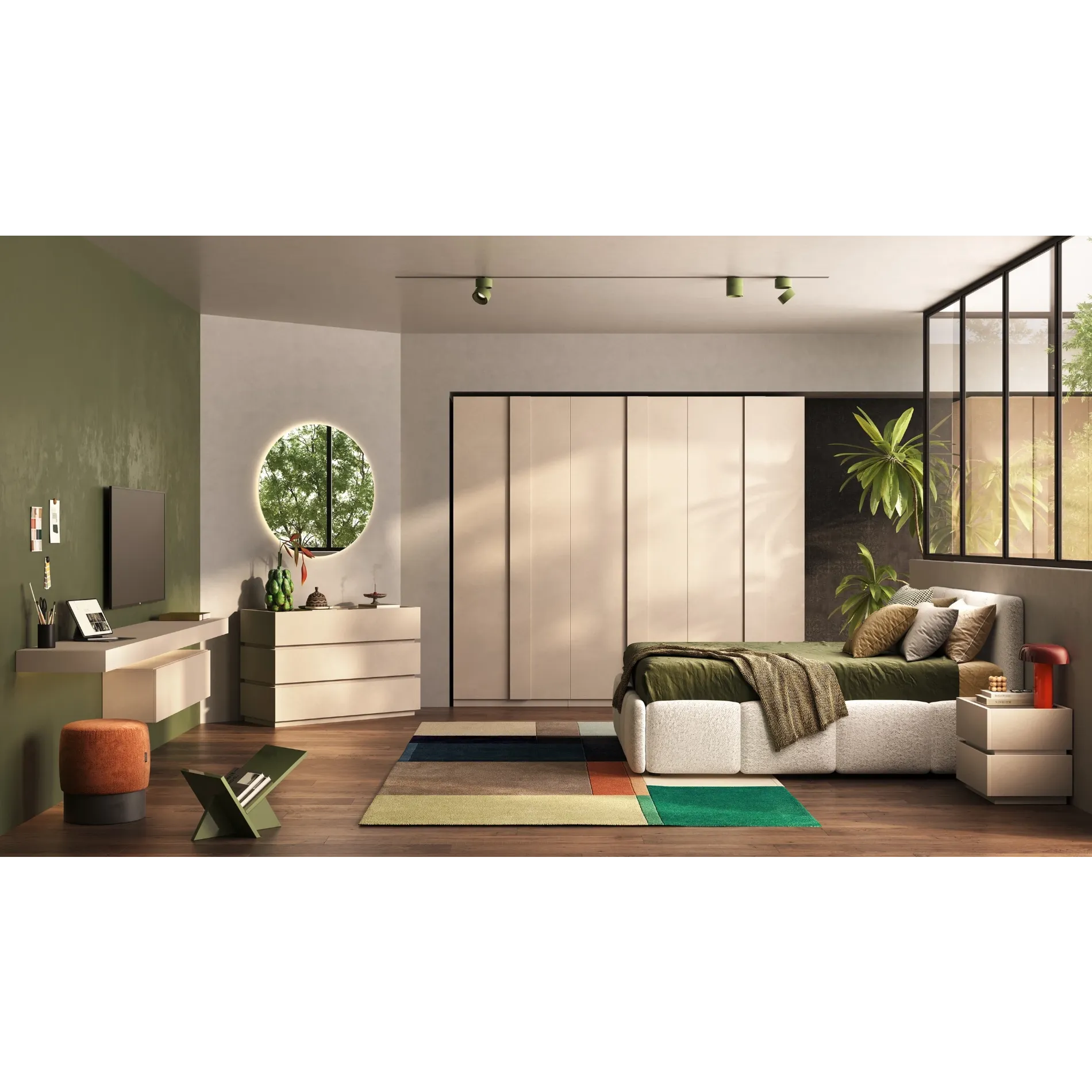 Le ante sono lisce e squadrate, ideali per chi ama uno stile minimalista che non passa mai di moda e si adatta a qualsiasi tipo di pavimento, dal parquet scuro alle superfici più chiare.