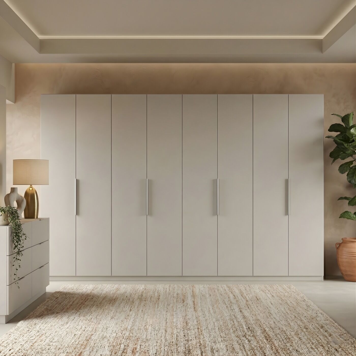 Con le sue 8 ante battenti e il design pulito, l'armadio regala un senso di ordine e ampiezza incredibile.