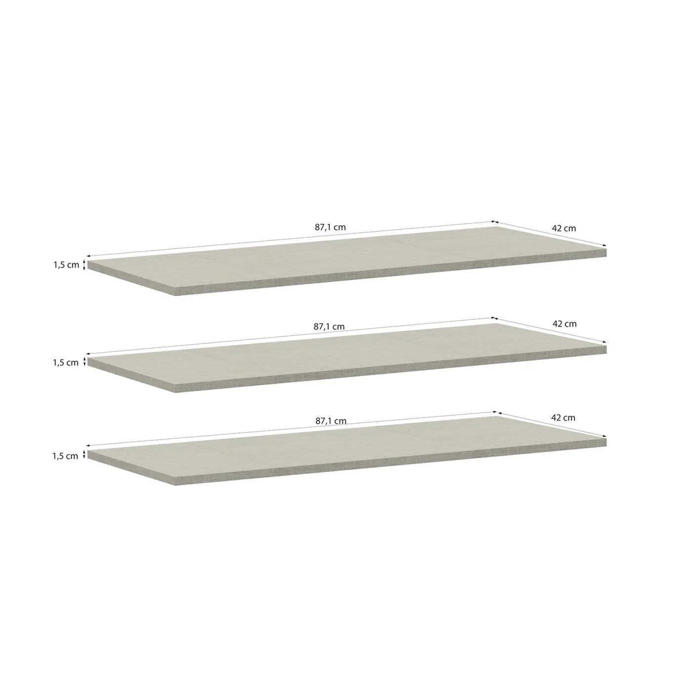 - Set di 3 ripiani L.86,5 P.42 SP.1,5