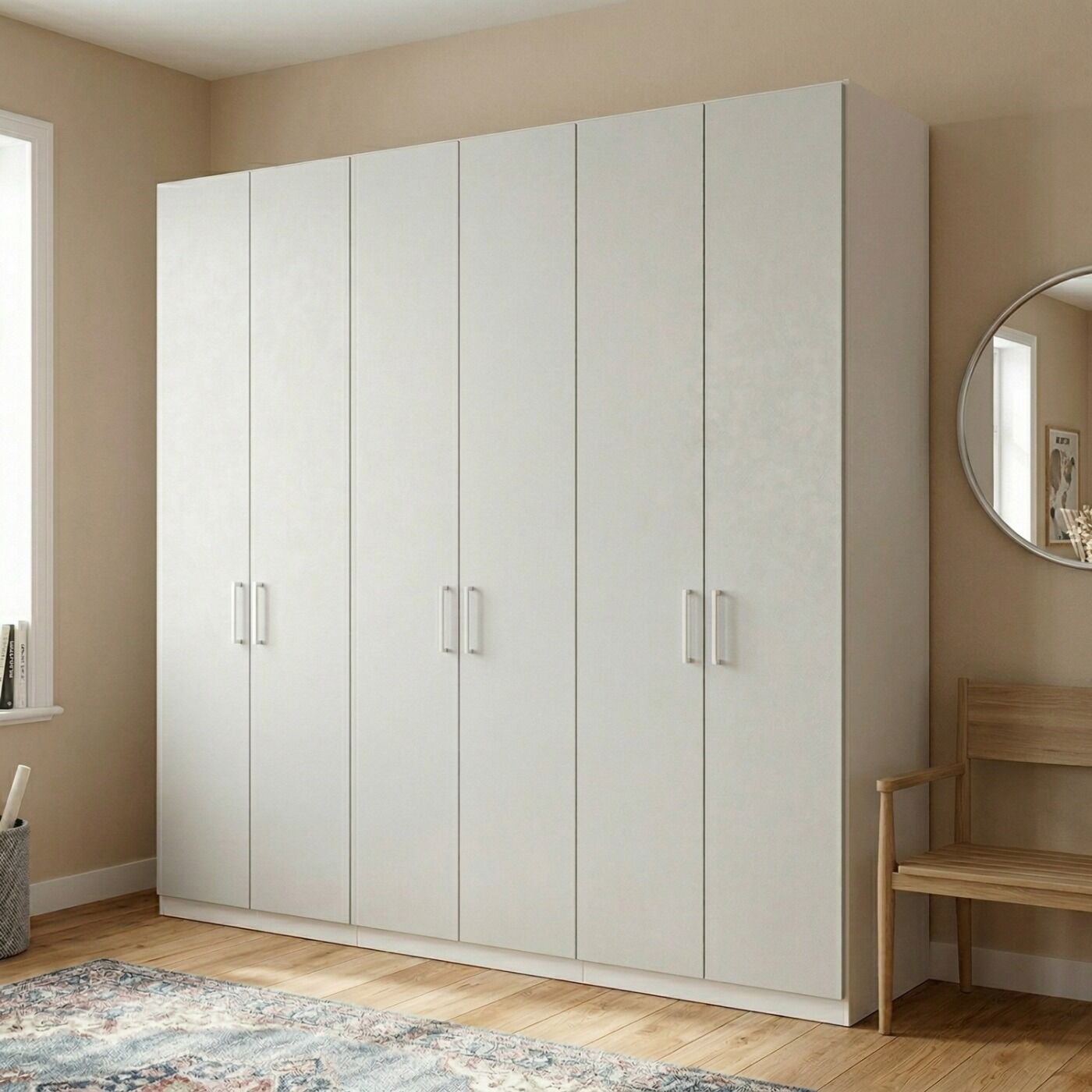 Armadio camerette a 6 ante, Gesso e Bianco opaco, L.270