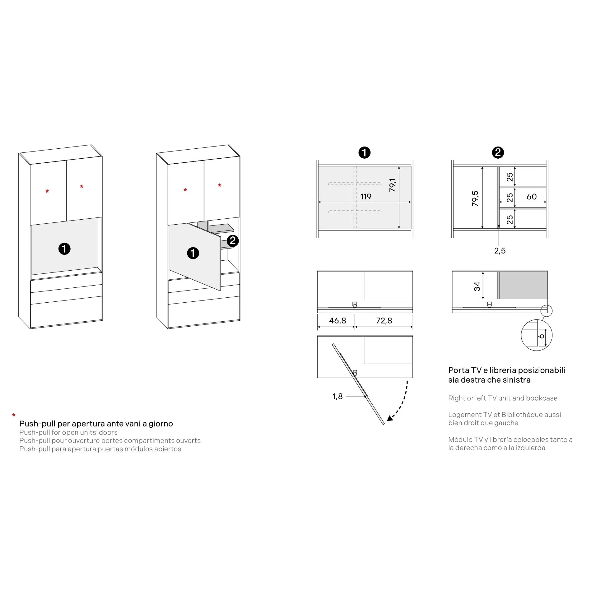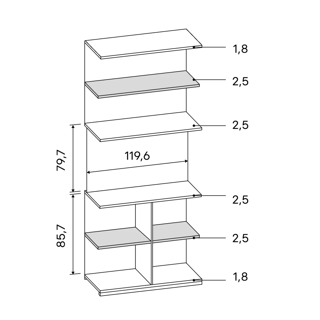 • Spessore ripiani 25 mm