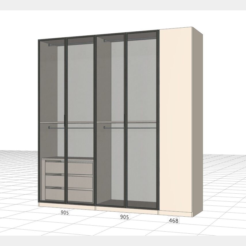 Armadio 5 ante battenti con vetro fumè, Cashmere