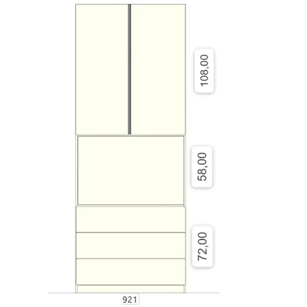 La sua struttura si presenta con ante a battente dal colore Cashmere, una tonalità di beige molto chiara e calda che evoca eleganza e tranquillità.