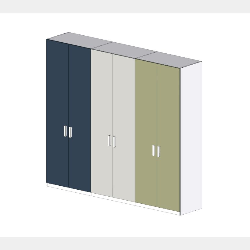 L'allestimento standard dell'armadio prevede un ripiano e due tubi appendiabiti per modulo, in totale verranno forniti 3 ripiani e 6 tubi