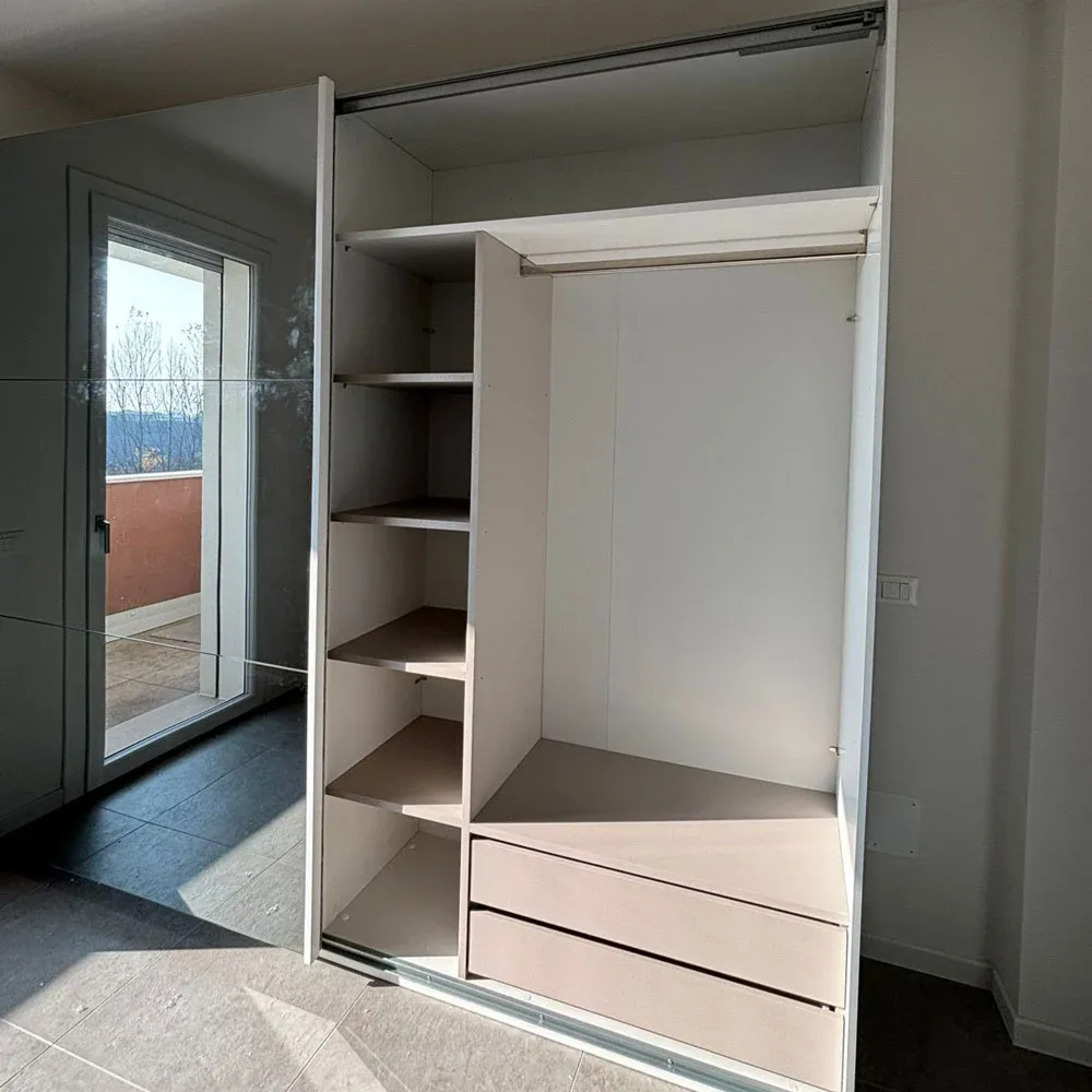 Armadio scorrevole in finitura Bianco lucido con specchi fumé, 100% Made in Italy. Vedi tutti gli armadi scorrevoli.