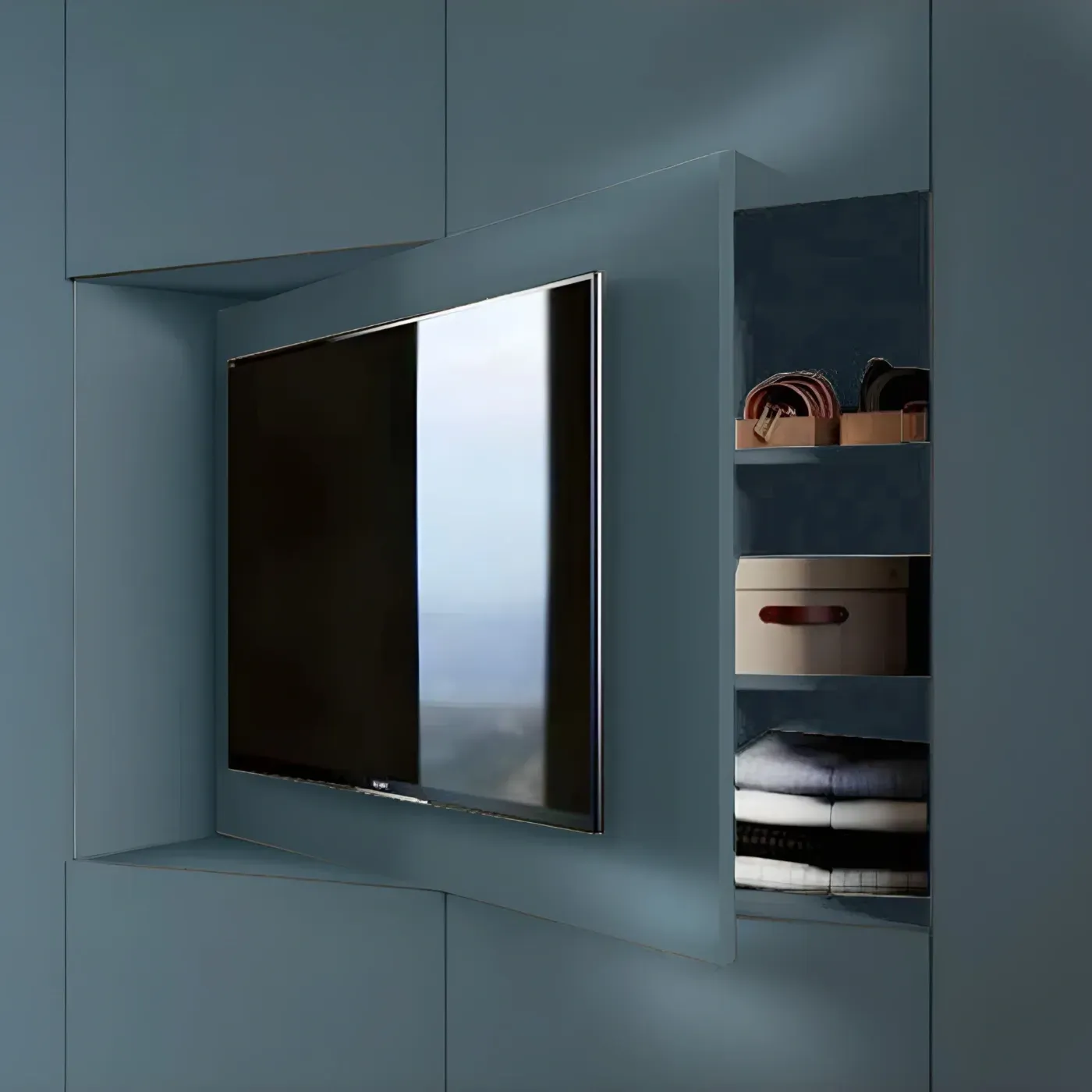 È possibile richiedere il vano tv girevole, un'ottima soluzione se il letto non è di fronte all'armadio.