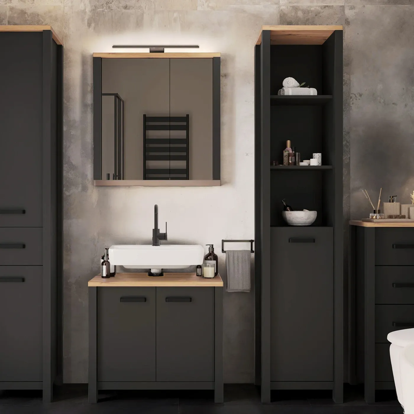 Bagno completo con specchiera e colonne, Rovere artisan e Antracite
