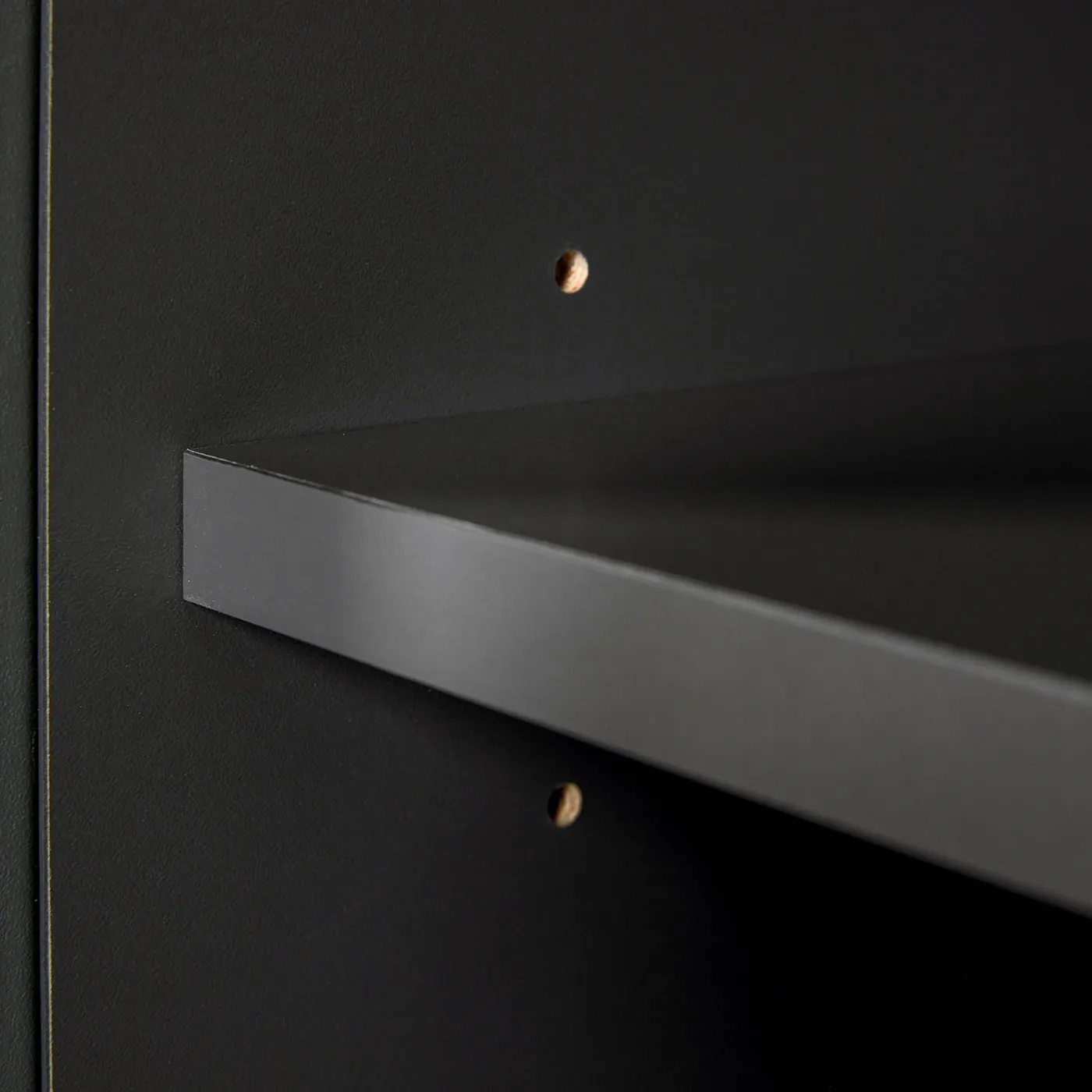 - Armadietto a 2 ante, entrambe con maniglie in alluminio e di un cassetto al centro, anch'esso dotato di maniglia. Al loro interno le ante nascondono un ripiano ciascuna.