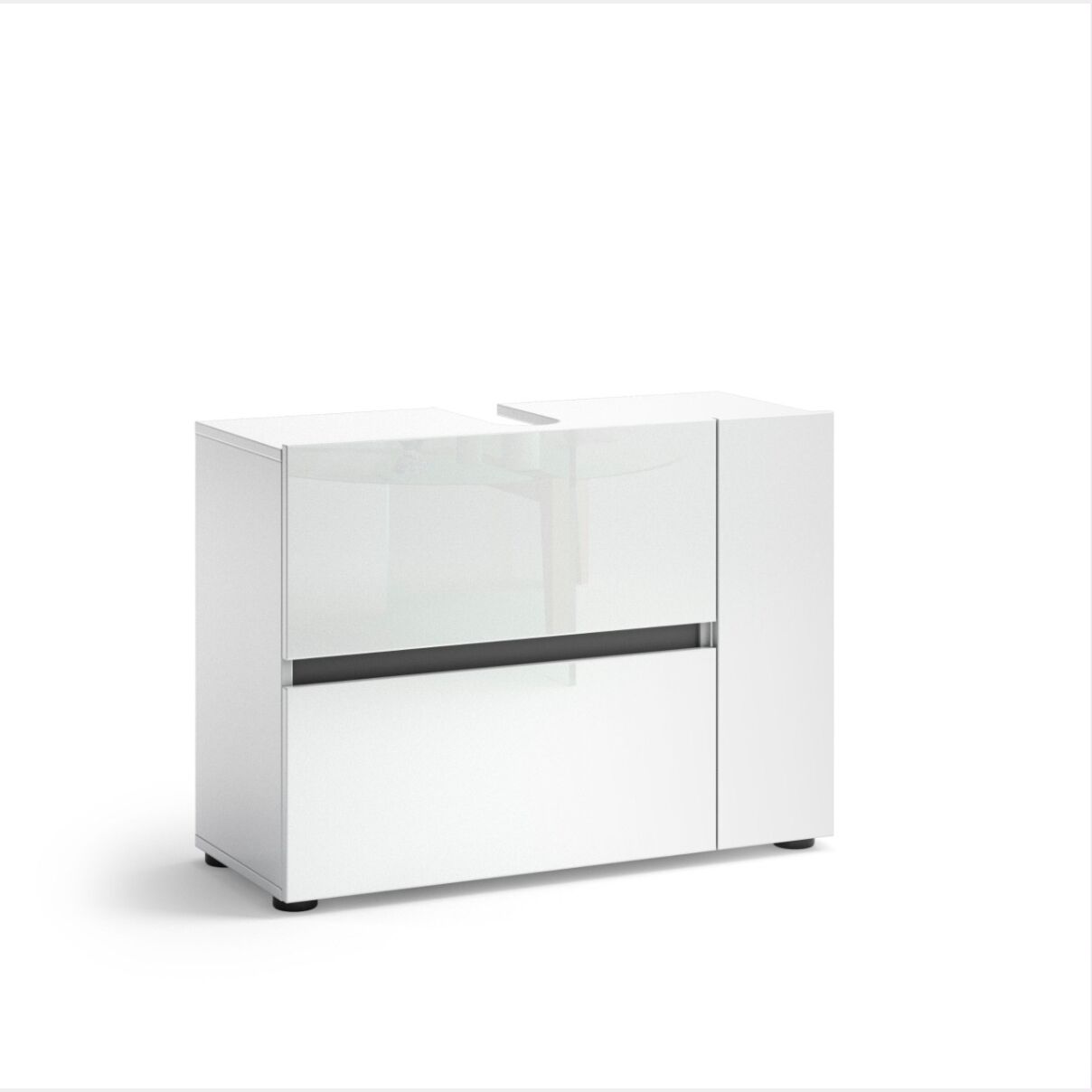 -Mobile da bagno basso con 1 cassetto e 2 ante, Bianco lucido L.83 P.34 H.62