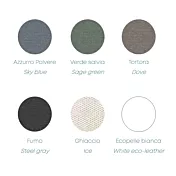 Il letto viene proposto in tessuto Ghiaccio, tonalità che ben si accosta al Bronzo e Mercure di comodini e armadio.