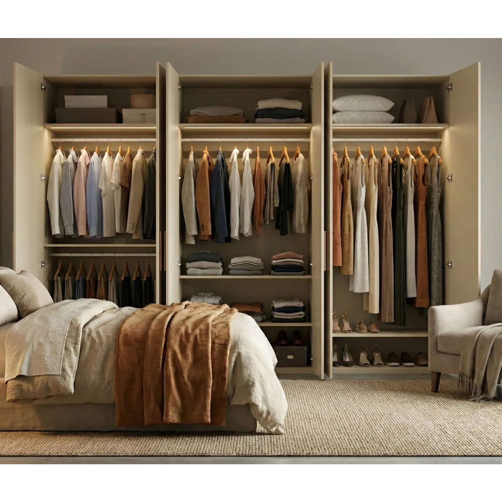 La colorazione Orzo riprende i frontali dell'armadio.