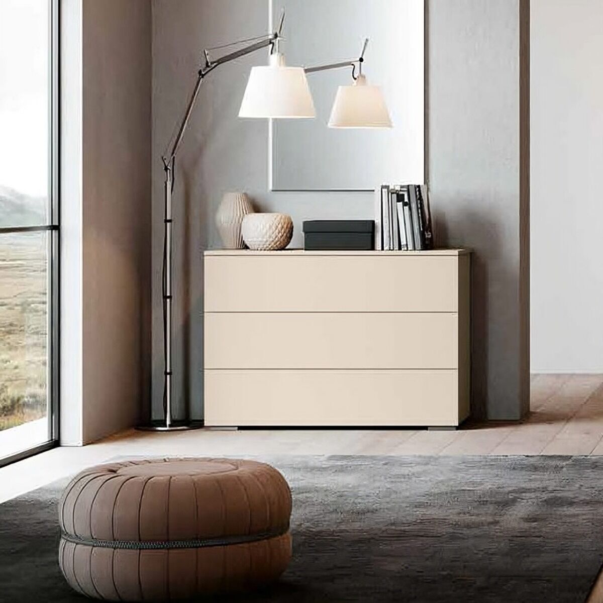 Il comò è dotato di tre cassetti, con apetura a presa laterale.