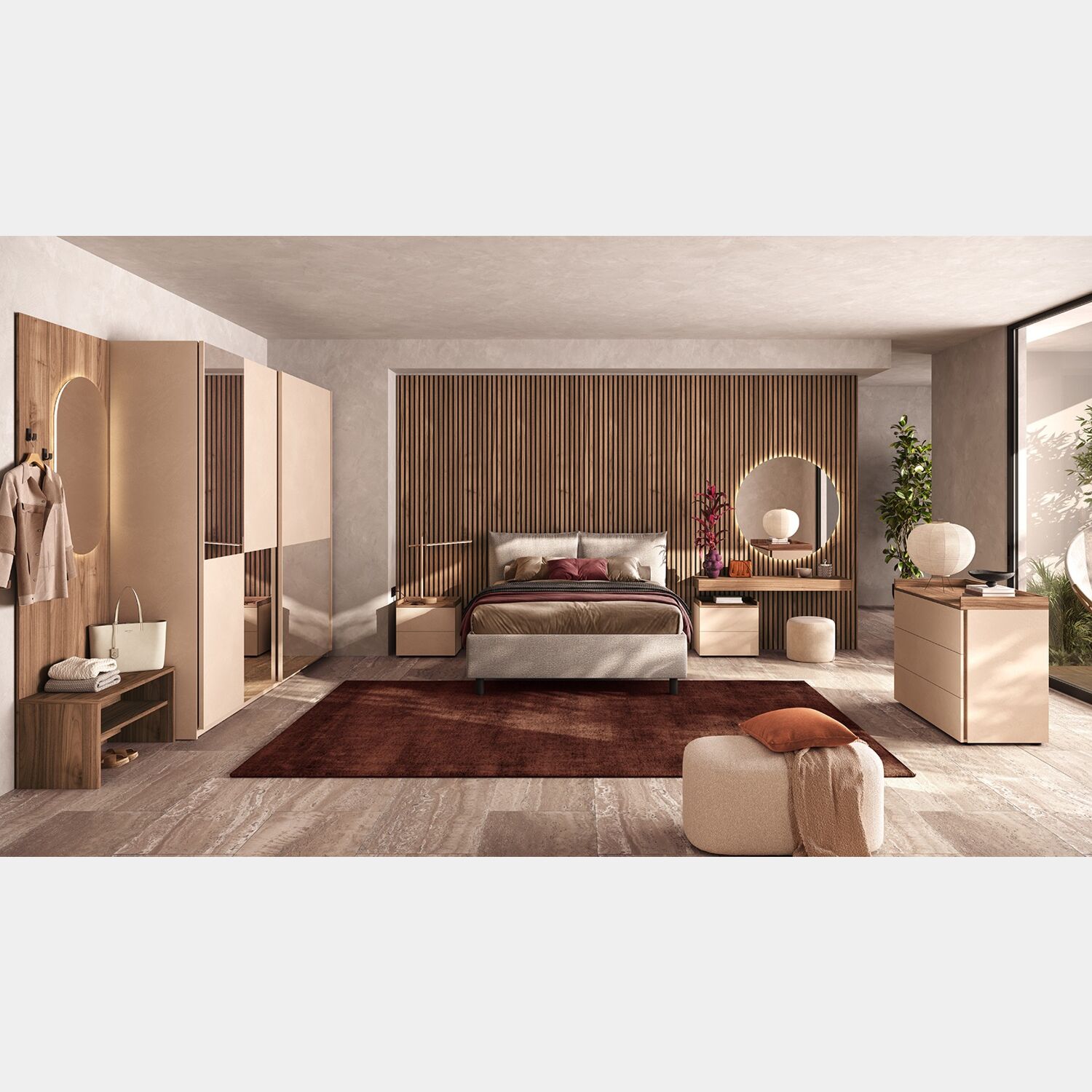 Camera matrimoniale Cashmere e Noce caramello, letto imbottito