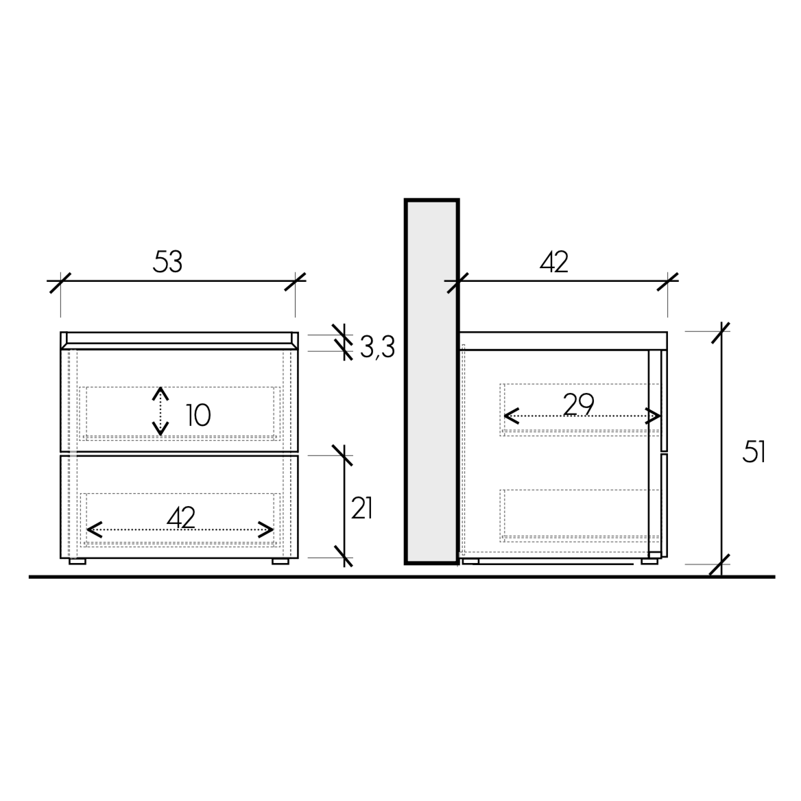 Comodini: L.53 H.51 P.42