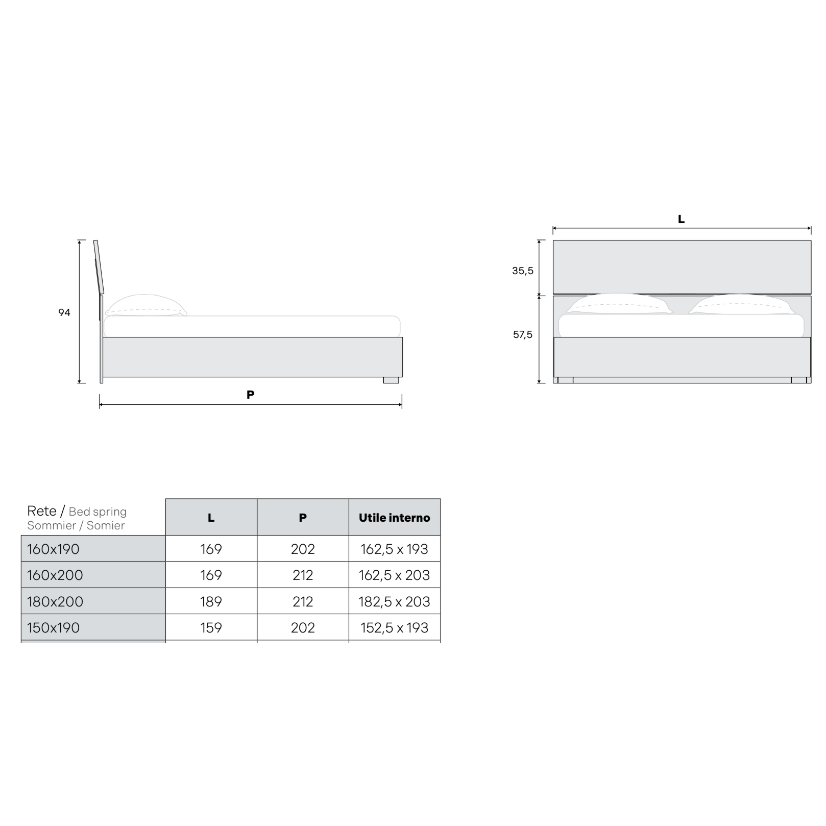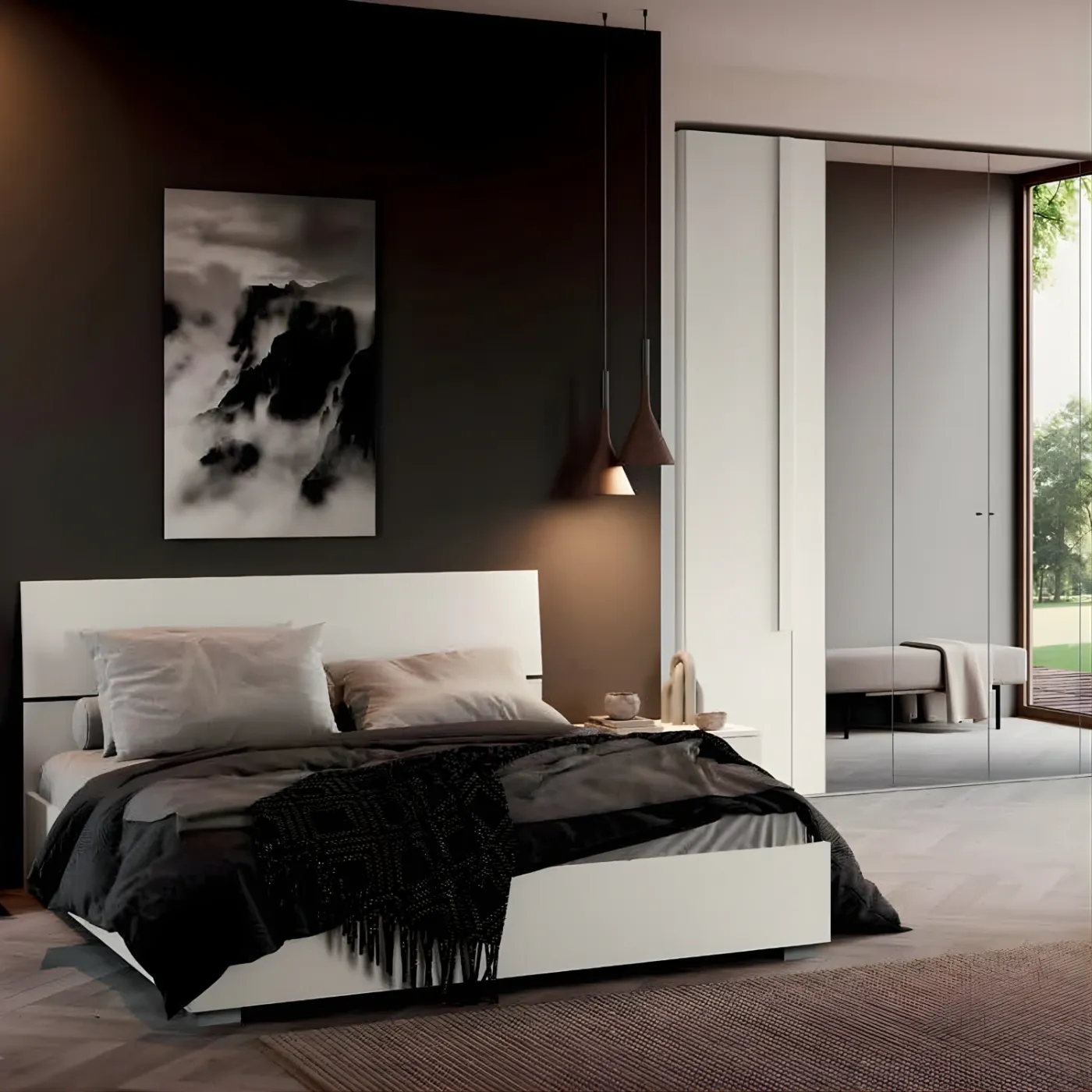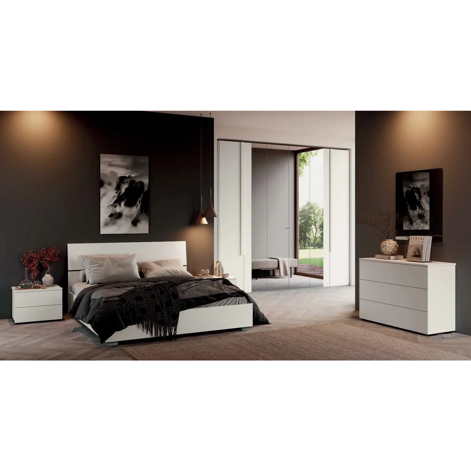 Il letto ha un design moderno e raffinato in finitura Bianco opaco, che conferisce alla struttura un aspetto solido e vellutato.
