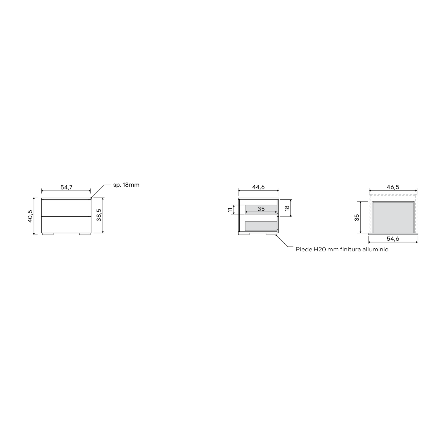Coppia di comodini: L.54,7 H.40,5 P.44,6