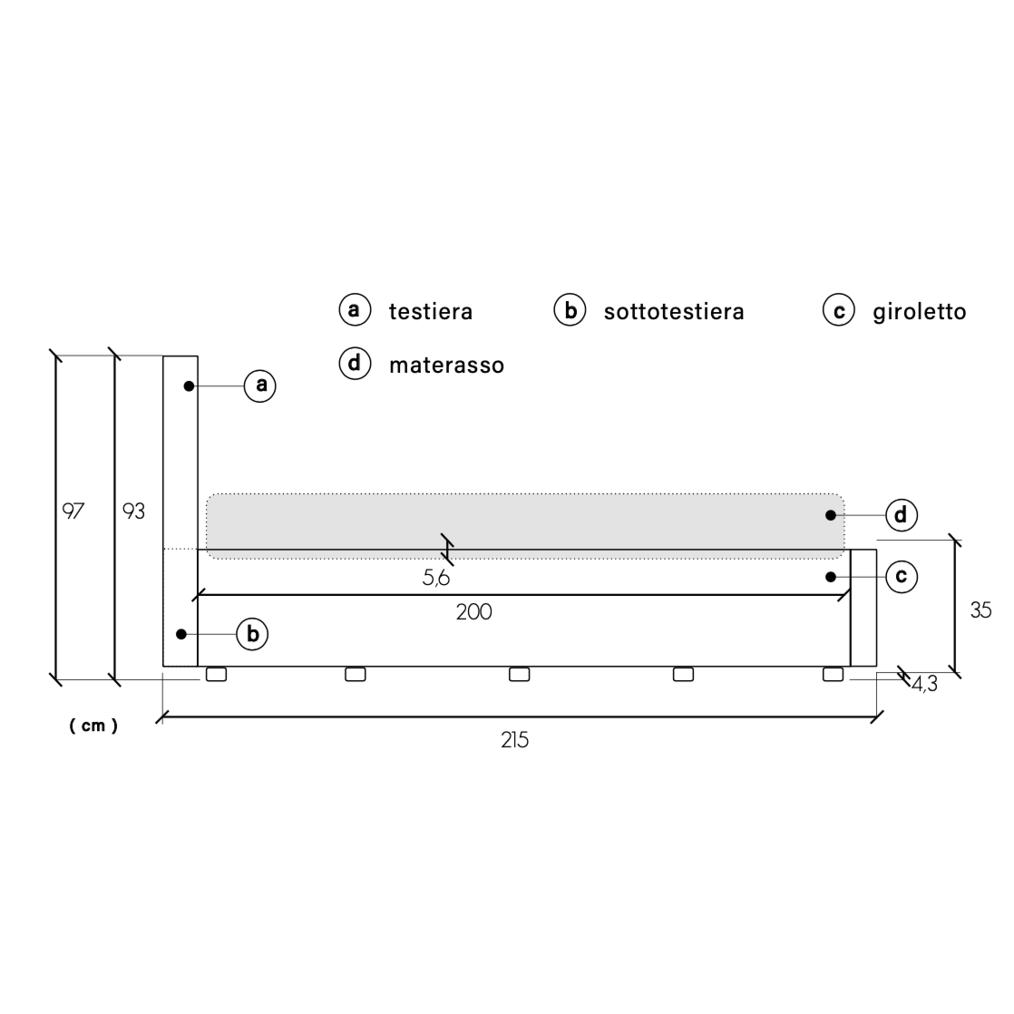 Letto: L.190 H.97 P.215