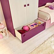 Come optional è possibile richiedere il Divano letto in Fliamingo Velvet (personalizzabile), il comodino con ruote a 2 cassetti e la scrivania!