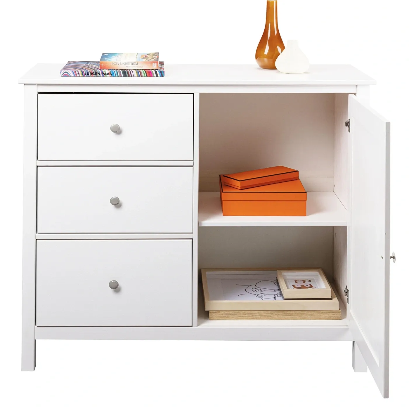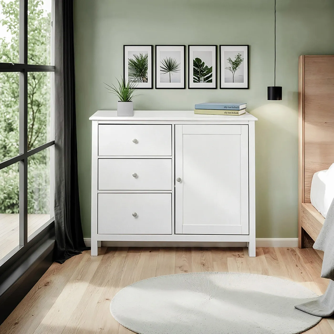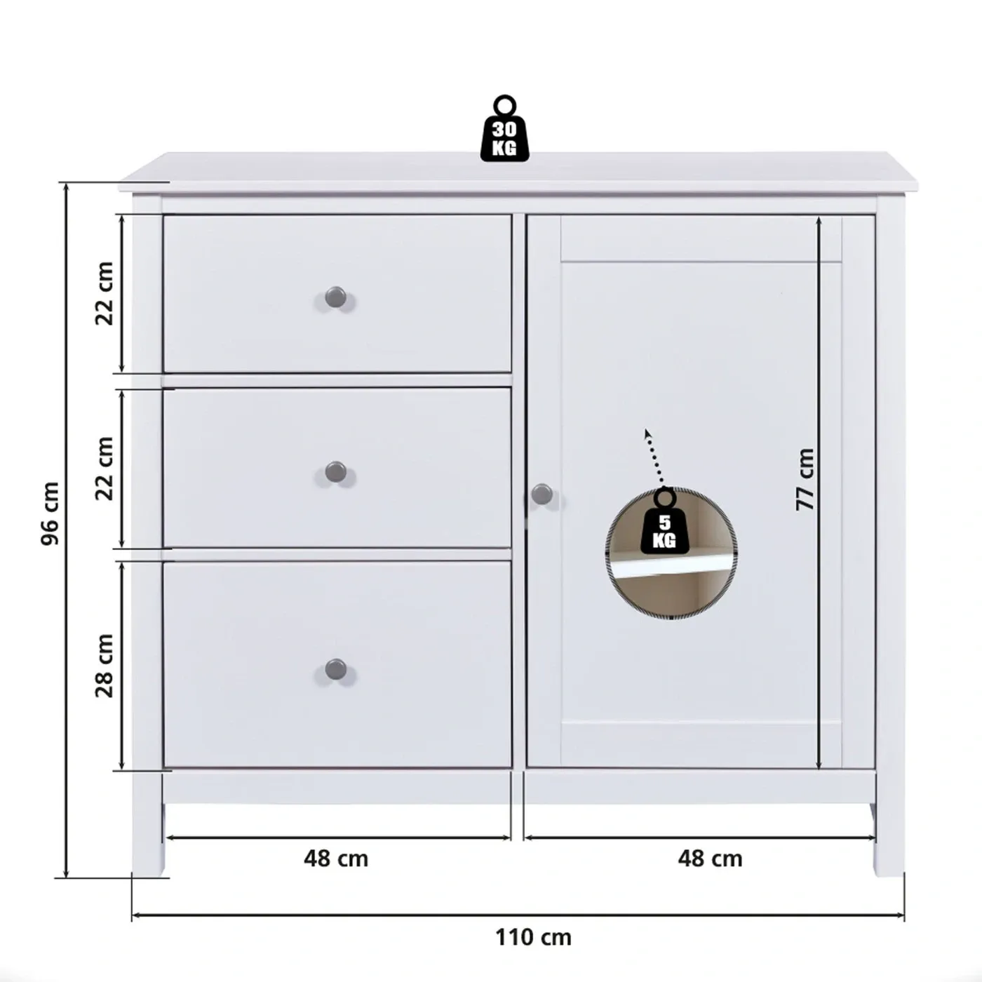 Madia 3 cassetti e 1 anta, L.110 H.96 P.40, Bianco