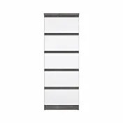 Cassettiera con cinque cassetti colore Calcestruzzo e Bianco lucido. E' disponibile in versione Nero opaco, Rovere, Bianco lucido