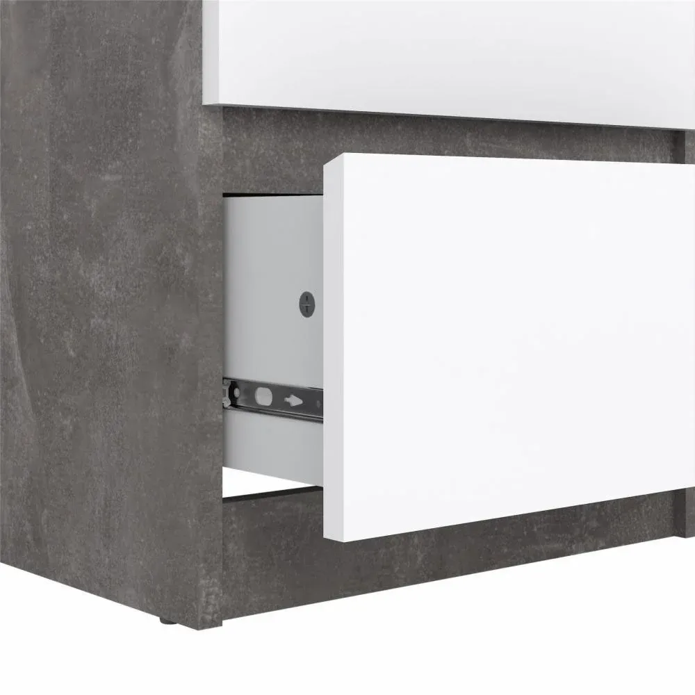 Cassettiera con cinque cassetti colore Calcestruzzo e Bianco lucido
