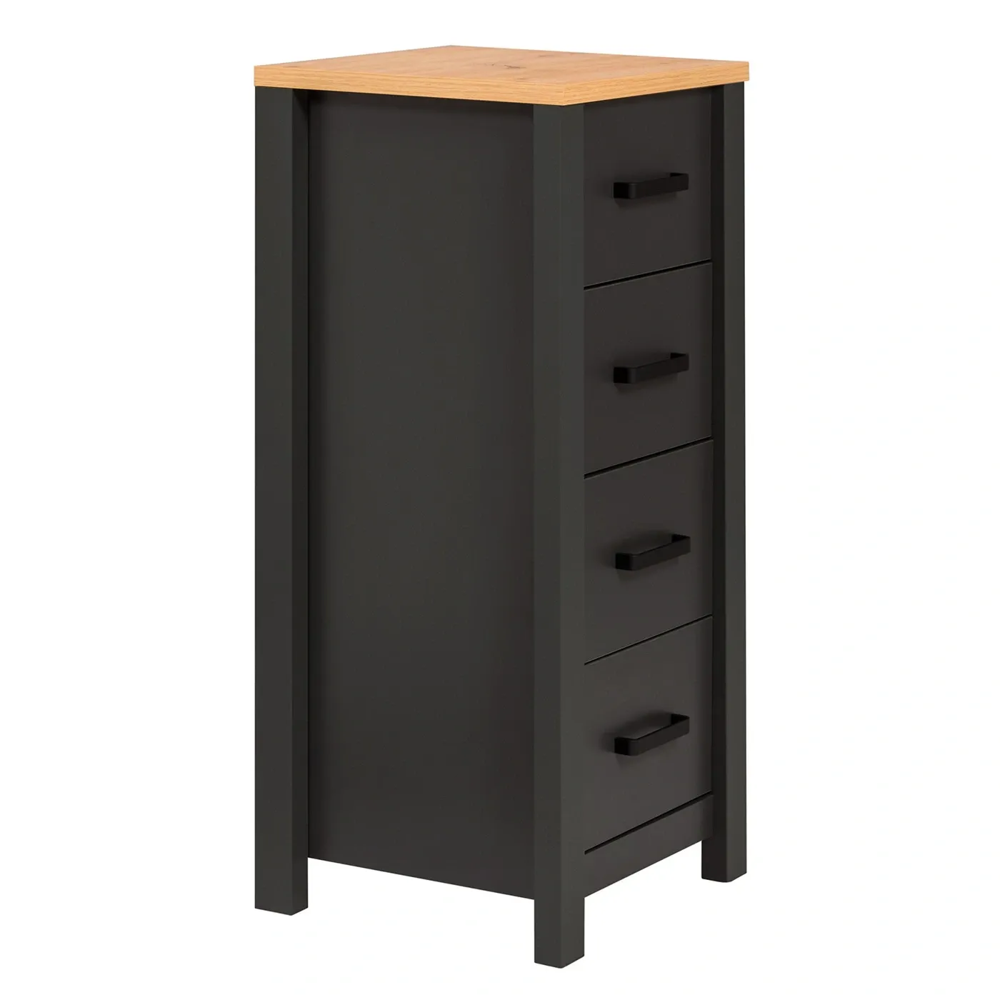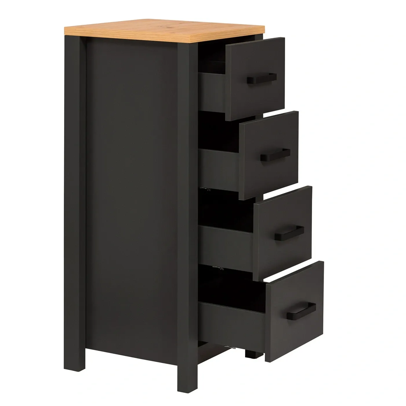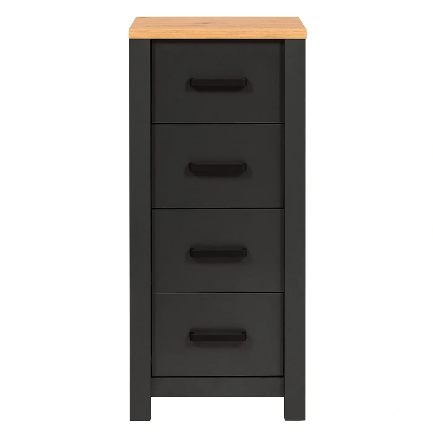 Cassettiera piccola 4 cassetti, L.42 H.94 P.40, Antracite e Rovere Artisan