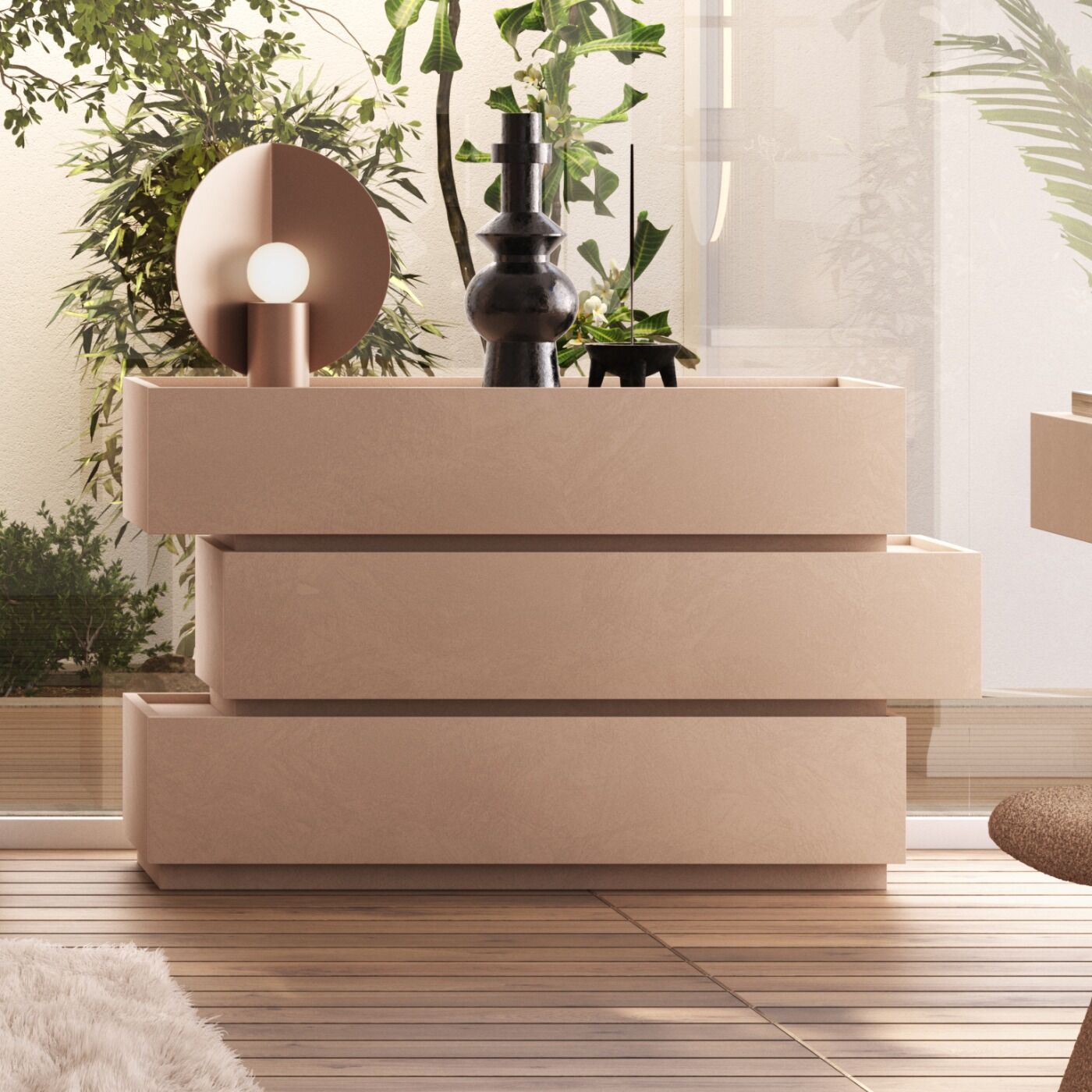 Il comò ha un design davvero pulito e moderno, perfetto per chi ama lo stile minimal ma non vuole rinunciare al calore.