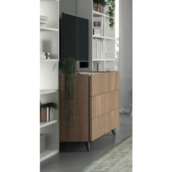 Design accattivante e finiture moderne caratterizzano il comò a 3 cassetti. La finitura in Noce gold viene proposta con venature verticali per assicurare un prodotto nuovo e moderno.