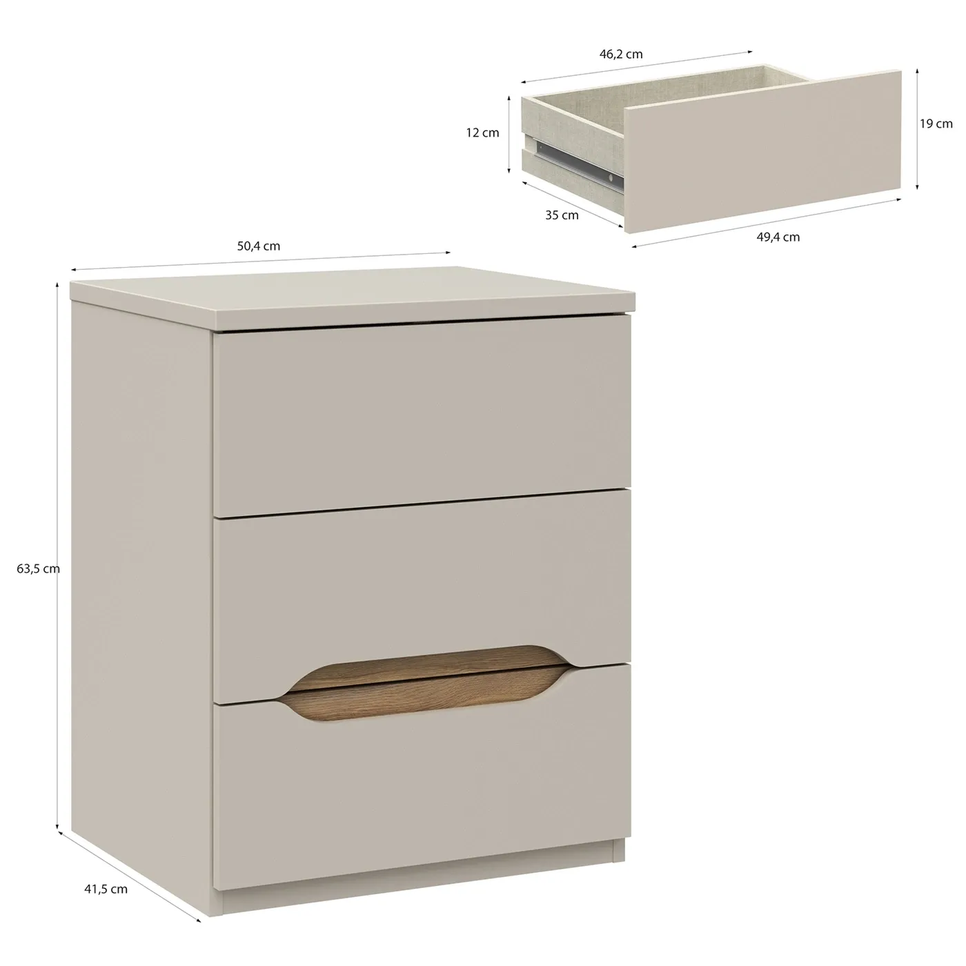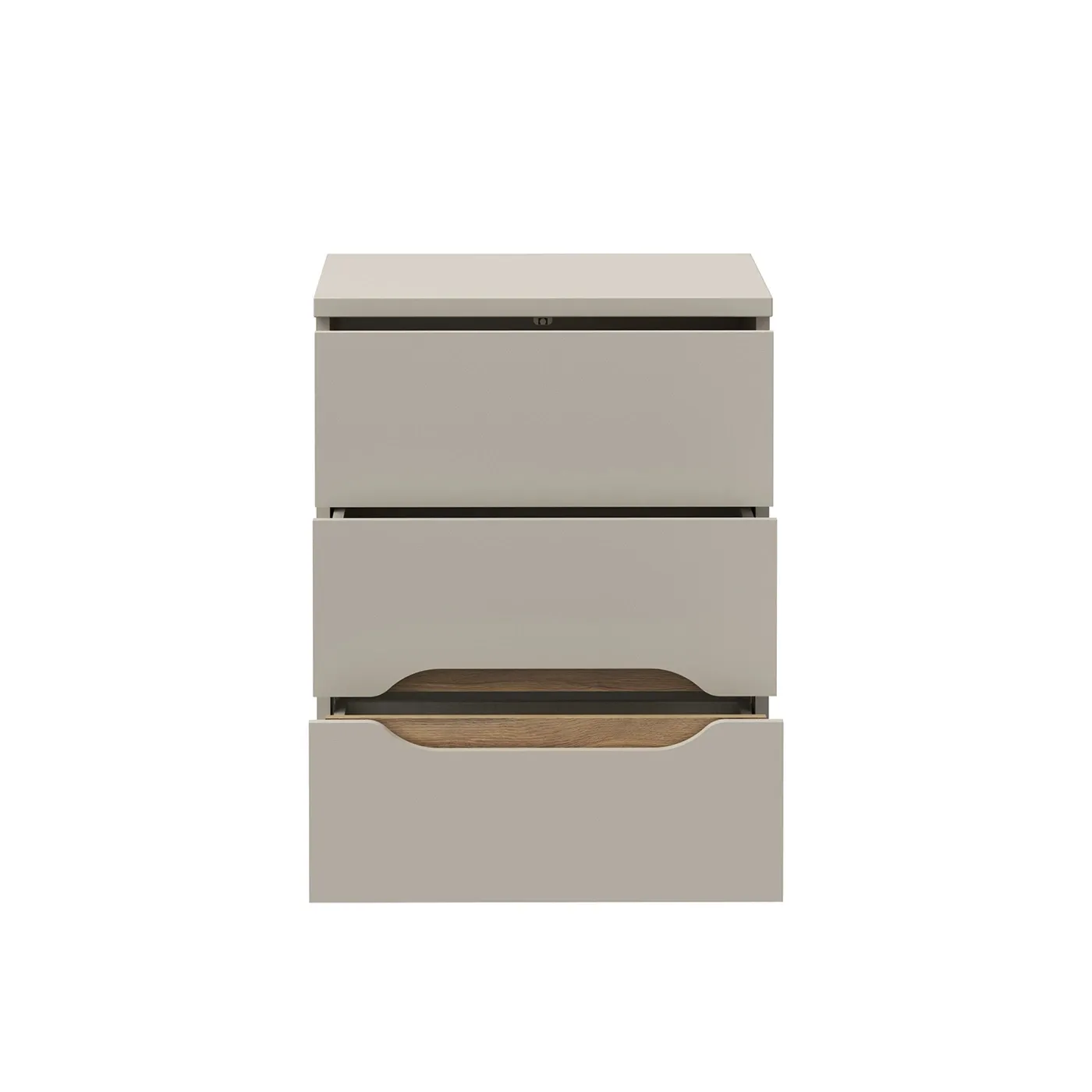 Comodino a 3 cassetti, L.51 H.64 P.42, in finitura Sabbia