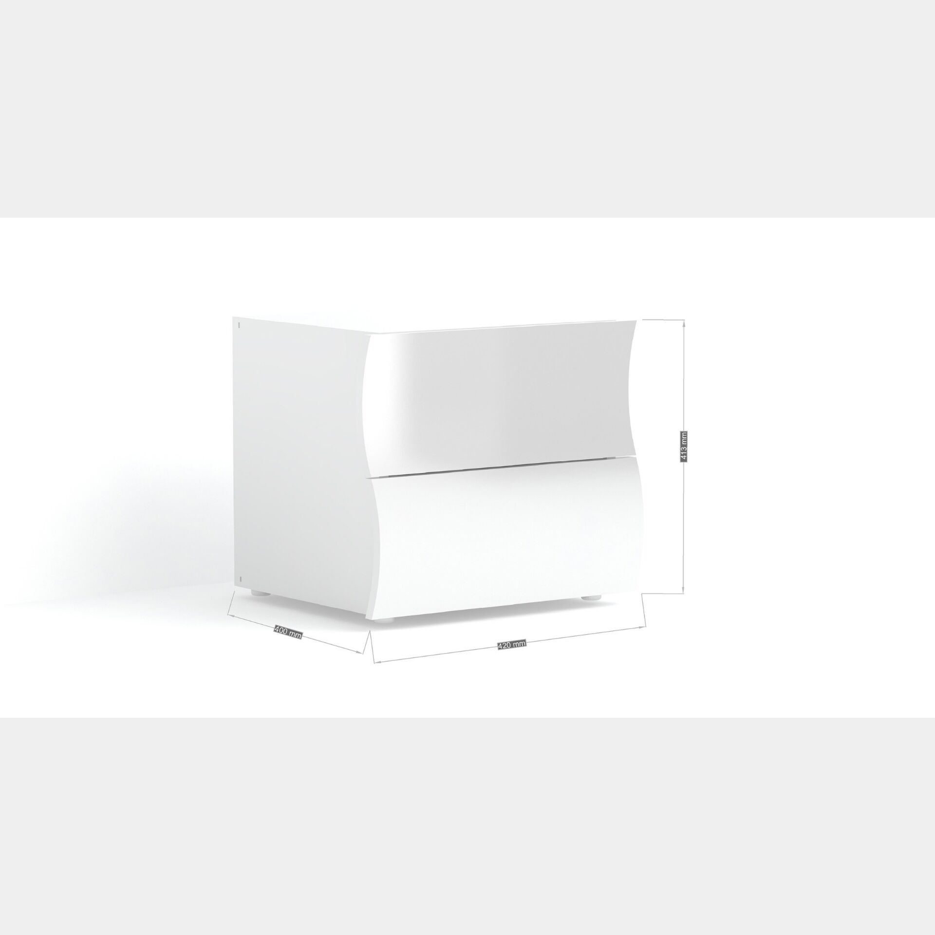 Comodino di design a 2 cassetti sagomati, bianco lucido, linea onda