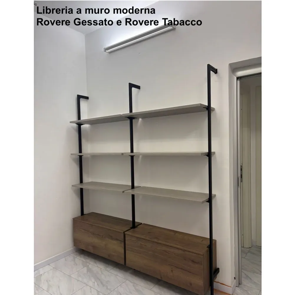 Libreria a muro moderna 186x35x215 h cm, Rovere tabacco e Bronzo- Island Zenzero Shop