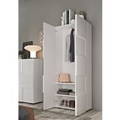 Il guardaroba a 2 ante assicura una notevole capienza per cappotti, sciarpe, borse o scarpe. L'allestimento interno dell'armadio prevede due ripiani inferiore e un tubo appendiabiti superiore.