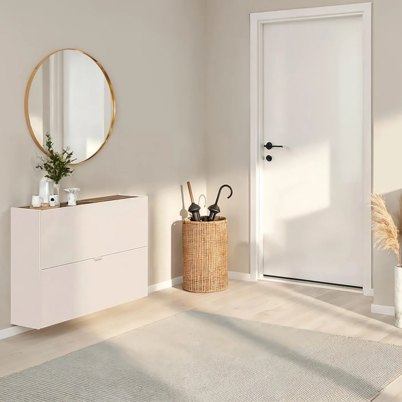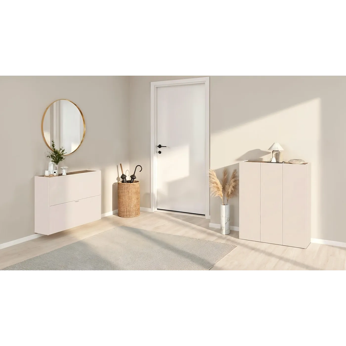 Composizione da ingresso, dotata di 2 scarpiere, Cashmere e Mercure