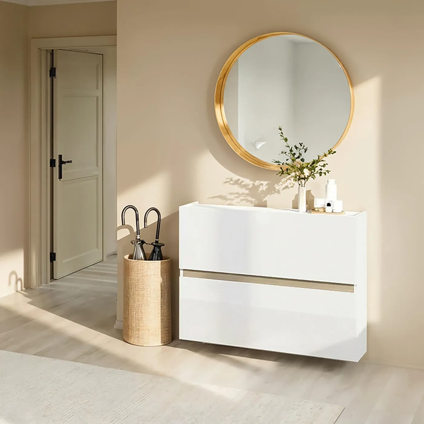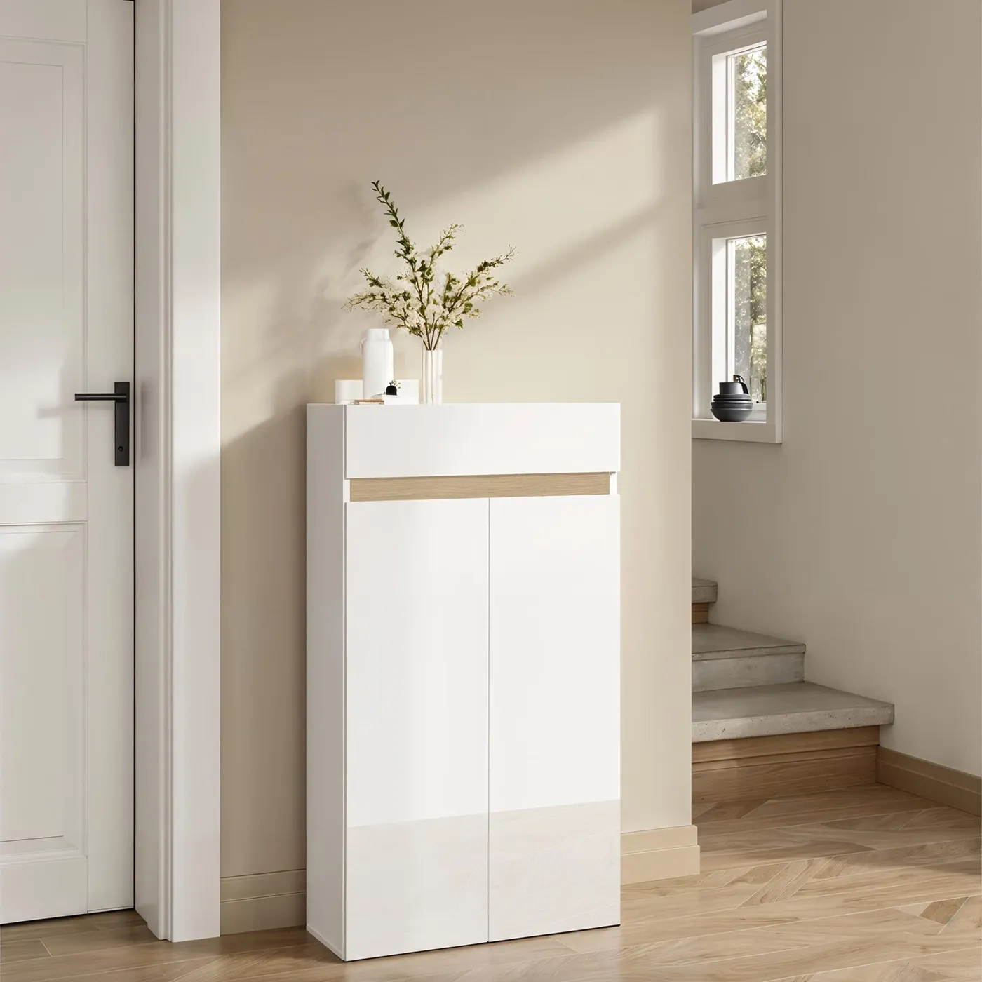 Composizione da ingresso, di 2 scarpiere, Bianco lucido e Rovere Lindberg