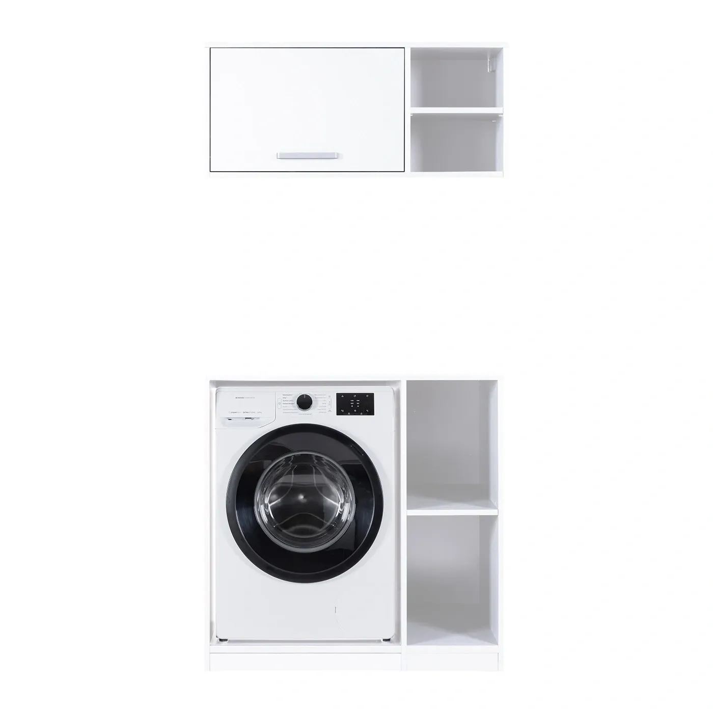 Composizione di 2 mobili, per lo spazio lavanderia, color Bianco