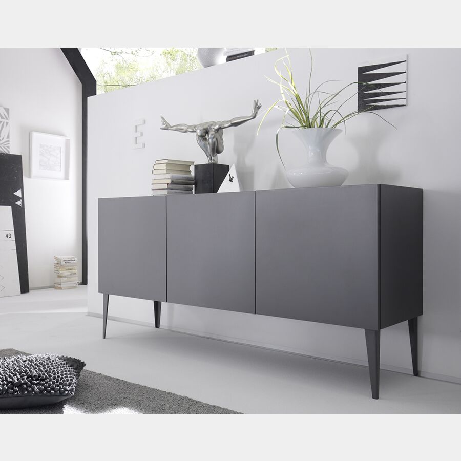 Credenza Moderna, Madia di design, 3 ante, Grigio Opaco con piedini