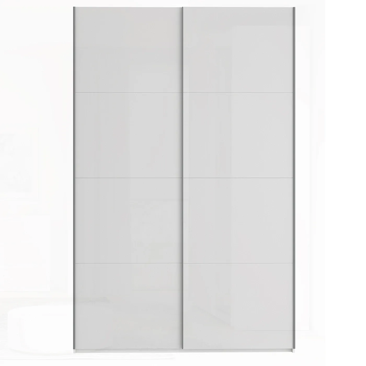 Armadio a 2 ante scorrevoli con elegante decorazione sulle sue 2 ante. All'interno possiede di base ben 4 ripiani fissi e 2 tubi appendiabiti. Ideale per diverse funzioni e disponibile nella versione Bianco lucido oltre che Bianco.