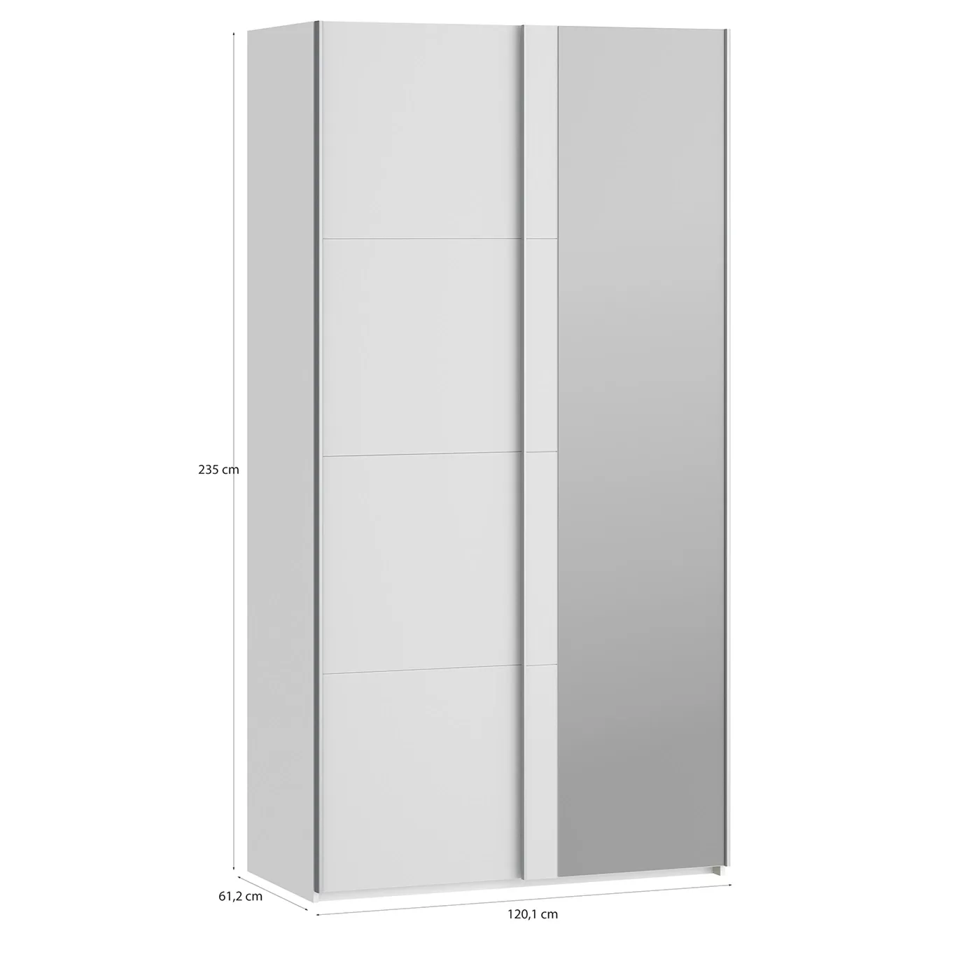 Elegante armadio a 2 ante scorrevoli con specchio, Bianco, L.120