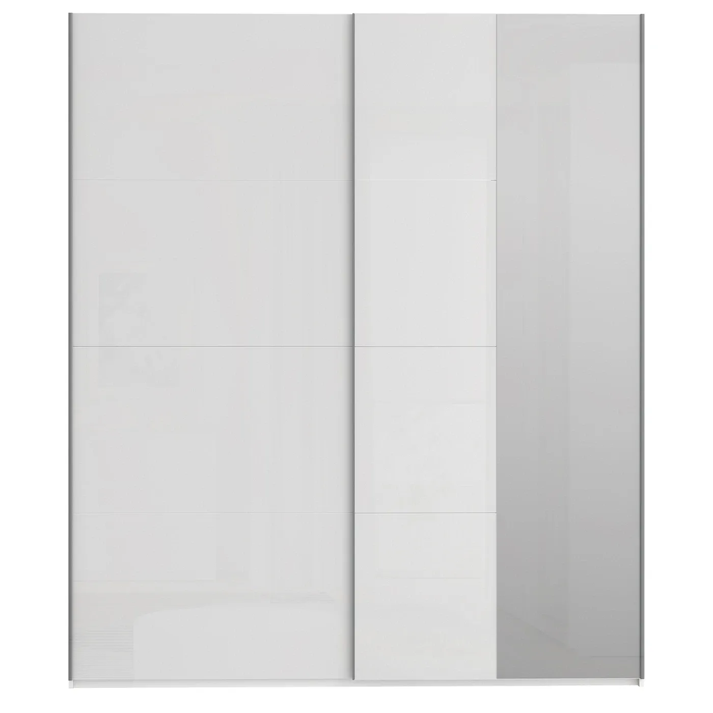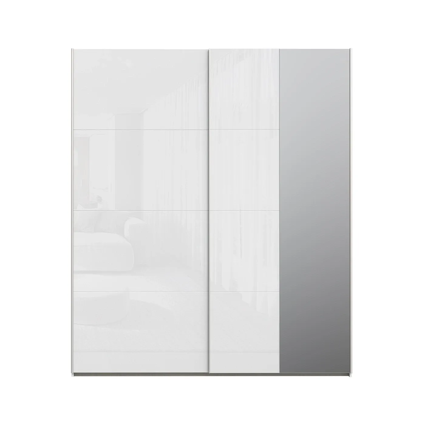 Elegante armadio a 2 ante scorrevoli con specchio, Bianco lucido, L.200