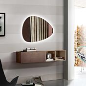 Innovativa composizione composta da specchio di design un pensile a ribalta e 2 vani a giorno, adatti per arredare sia il soggiorno che l'ingresso.