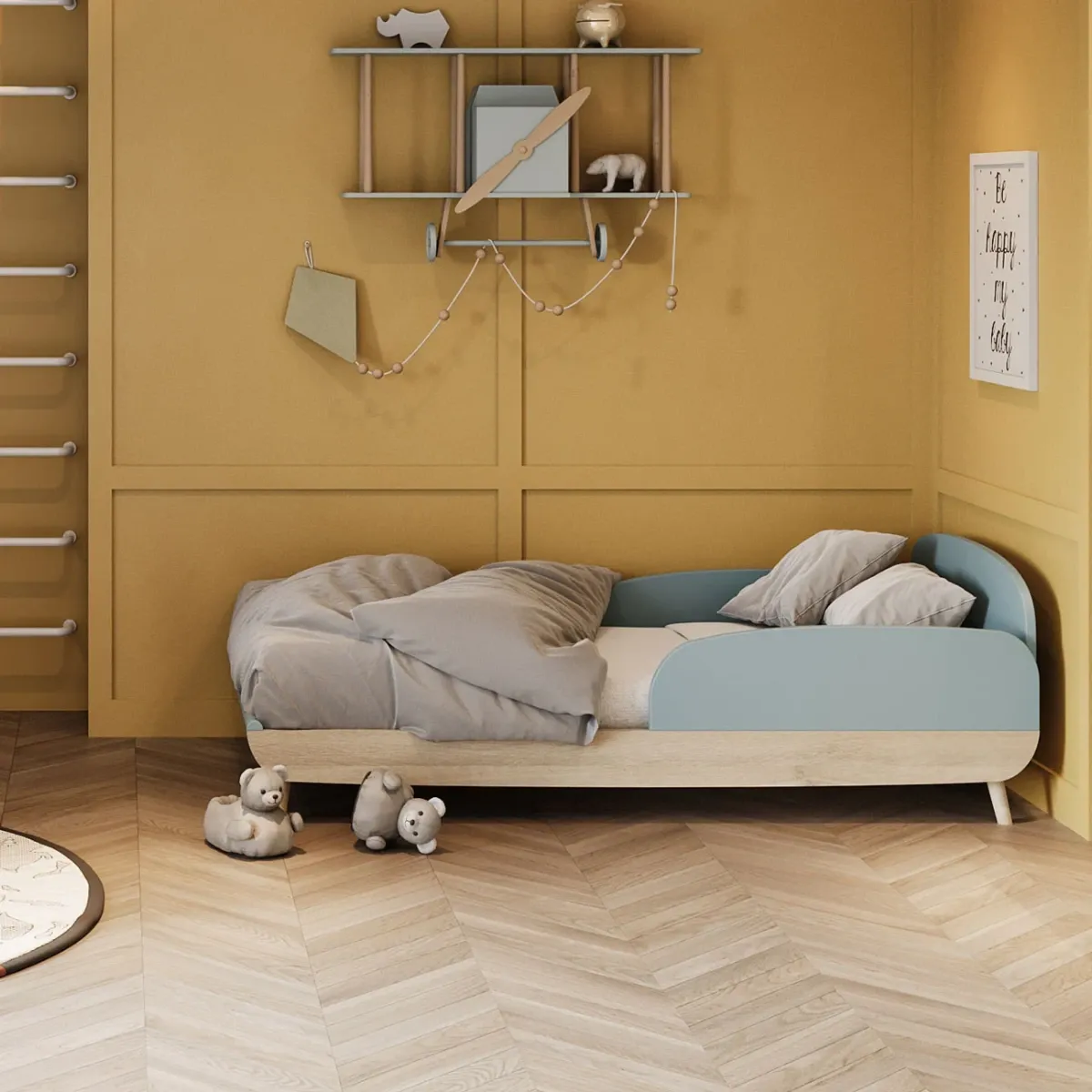 Il lettino, adatto a bambini dai 3 ai 7 anni, coniuga estetica a sicurezza: le spondine laterali proteggono il bambino durante il riposo, al contempo, il design moderno e la colorata finitura Carta da zucchero assicurano un arredo moderno e divertente.