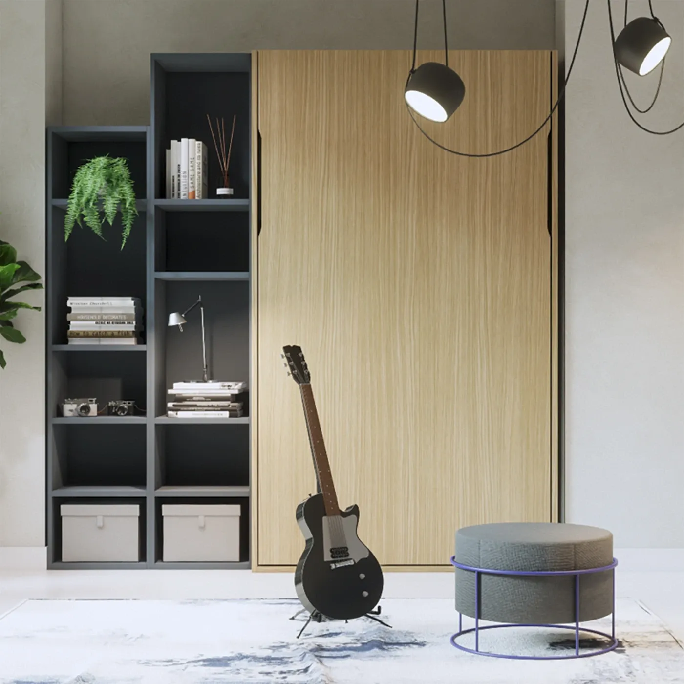Questo letto matrimoniale a scomparsa unisce un design intelligente a una praticità senza pari: grazie alle gole laterali e al meccanismo assistito, il passaggio dalla zona giorno alla zona notte avviene in pochi istanti.