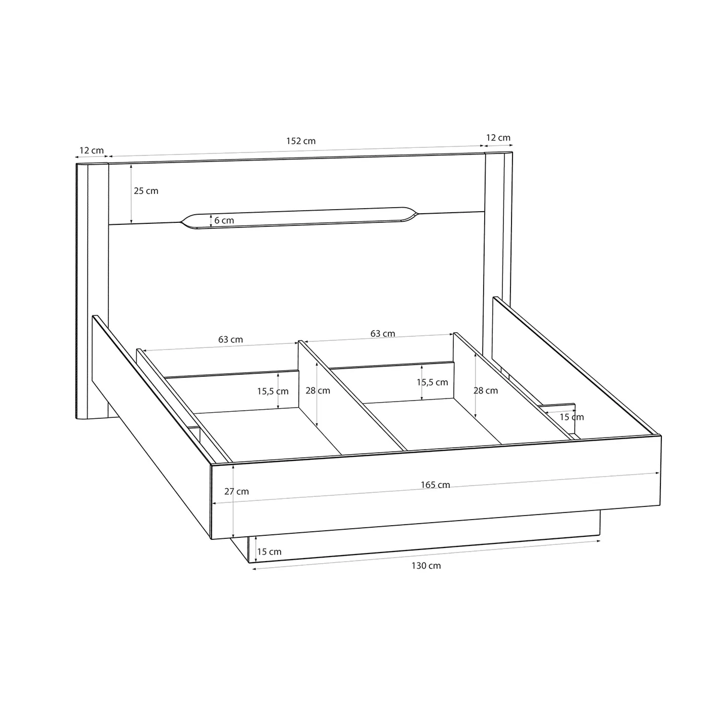 Essa si solleva frontalmente mediante un meccanismo a pistoni che riduce lo sforzo necessario e apre su 3 capienti scomparti, ideali per riporre biancheria ingombrante, cuscini o scatole.