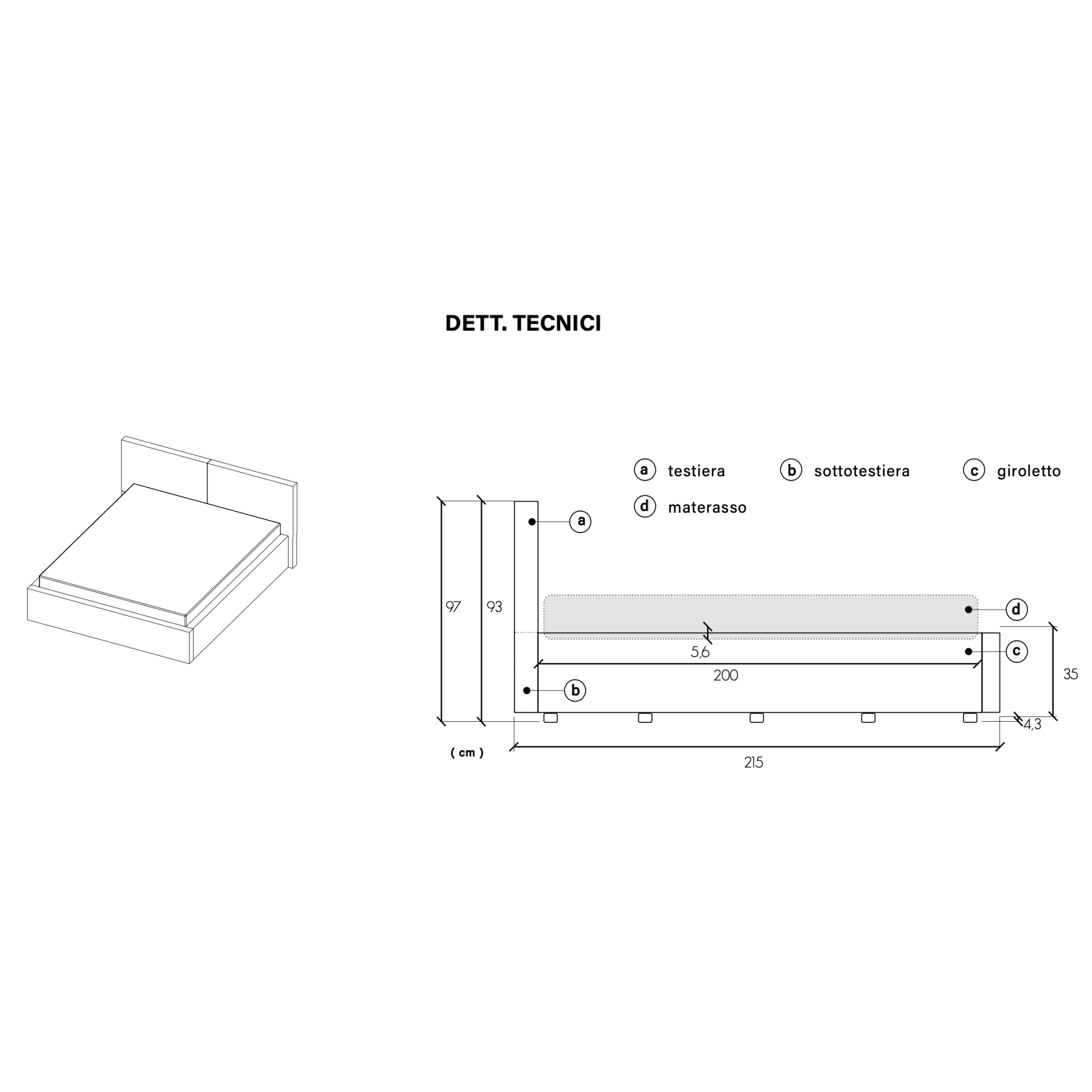 Rete e materasso devono avere dimensioni 160x195, non sono inclusi. È possibile richiedere la versione con contenitore, per ottenere spazio contenitivo extra.